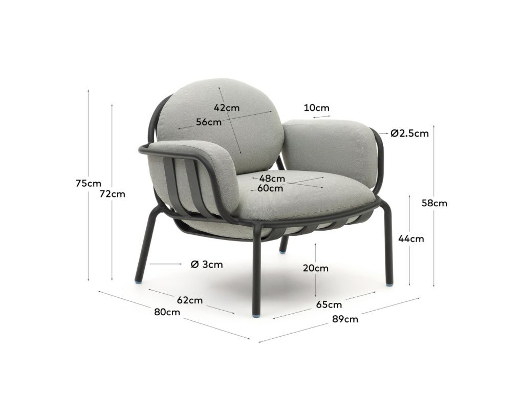 Doplňte své venkovní posezení stylovou zahradní pohovkou Kave Home Joncols s polštáři a hliníkovou konstrukcí tmavě šedé barvy. Díky použitému materiálu, který je odolný proti korozi i UV záření, je pro venkovní použití jako dělaná! Společnost vám ale může dělat i v interiéru – například v zimní zahradě. Hodit se bude všude tam, kde si chcete užít klidné posezení a dopřát si chvilku pohodlného odpočinku. Joncols pochází ze stejnojmenné série nábytku, díky které můžete vaše posezení dokonale sladit a dopřát mu čistý minimalistický design.