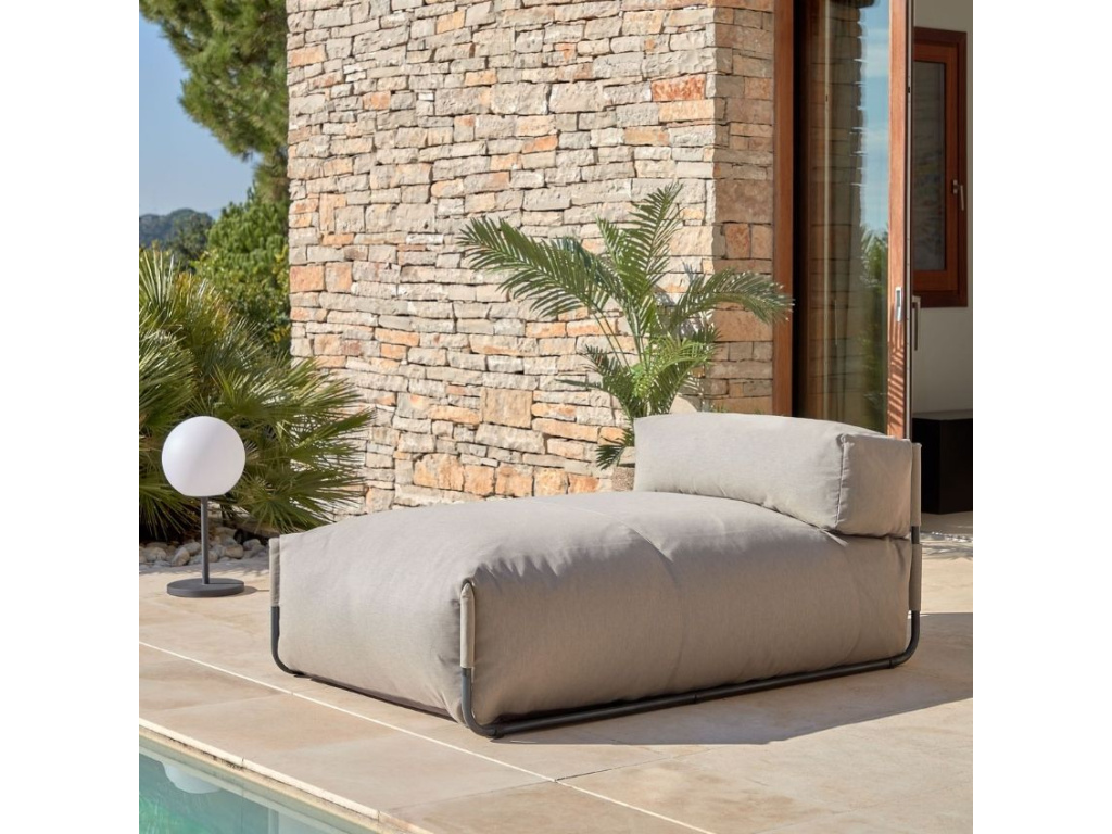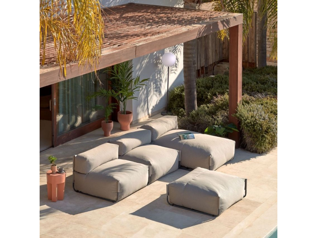 Modulární pohovka Square vám pomůže vytvořit na vaší zahradě nebo terase perfektní odpočinkovou zónu, kterou si sestavíte přesně podle vašich potřeb. Pohovka je čalouněná odolnou látkou šedo zelené barvy a stojí na nízké hliníkové podnoži. Díky široké zádové opěrce nabízí opravdu komfortní posezení, které si rychle zamilujete.