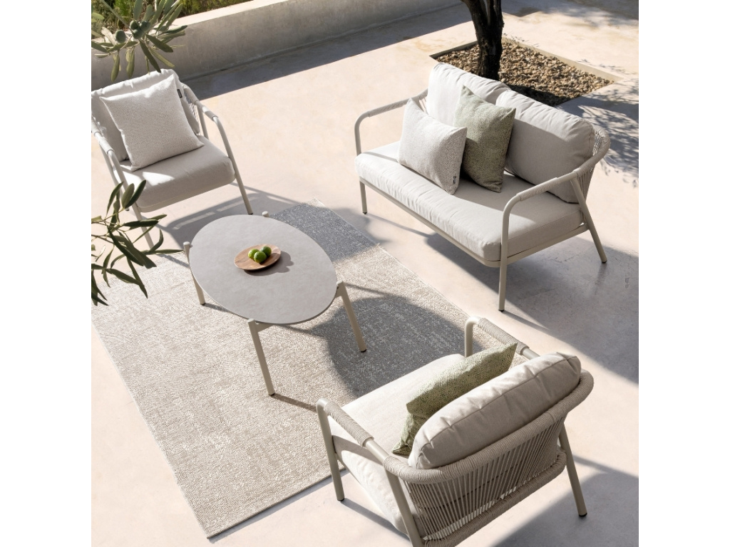Pohodlí a elegance v dokonalé harmonii – zahradní set Miravet promění vaši terasu v luxusní relaxační zónu. Práškově lakovaná hliníková konstrukce v kombinaci s tkaným výpletem dodává nábytku lehkost a vzdušnost. Vyjímatelné polštáře s vodoodpudivým povrchem se postarají o maximální komfort i v proměnlivém počasí. Stolek s deskou z tvrzeného kamene pak přidává na exkluzivitě a praktičnosti. Perfektní volba pro ty, kdo chtějí propojit moderní estetiku s nekompromisním pohodlím.