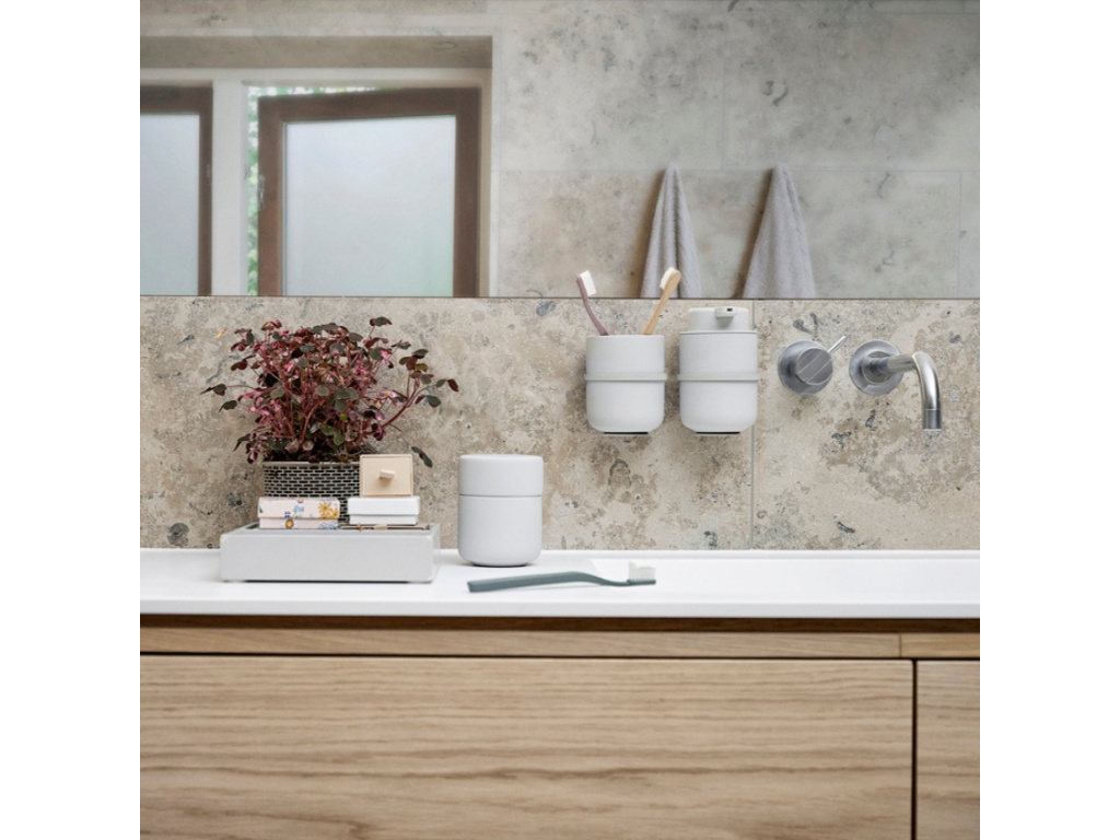 Minimalistická uzavíratelná dóza Ume z kolekce dánské značky Zone Denmark vám nabídne úložný prostor pro vaše drobnosti, které zároveň ochrání před vlhkostí. Designový box se skládá ze stylového kelímku a prohloubeného víka, které můžete využít i jako praktickou misku. Potěší vás jistě také pevný a odolný materiál z matné kameniny. Koupelnovou dózu s víkem můžete využít například jako zásobník na vatové tyčinky nebo odličovací tampony. Praktickou dózu do koupelny nabízíme v různých barevných provedeních.