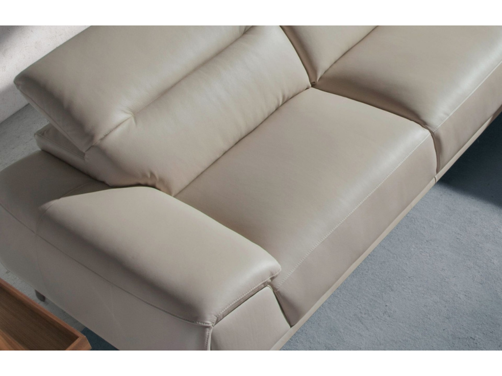 Dopřejte si prostornou rohovou pohovku, která spojuje moderní estetiku s maximálním pohodlím. Jemný šedobéžový odstín hovězí kůže působí decentně a vkusně a skvěle se kombinuje s přírodními materiály i kovovými doplňky. Díky polohovatelným opěrkám hlavy si každý člen domácnosti nastaví ideální pozici k sezení. Pevná konstrukce z masivního dřeva zajistí dlouhou životnost a stabilitu. Elegantní kovová podnož v hnědém tónu dodává pohovce na lehkosti a vytváří sofistikovaný kontrast k měkkému čalounění.