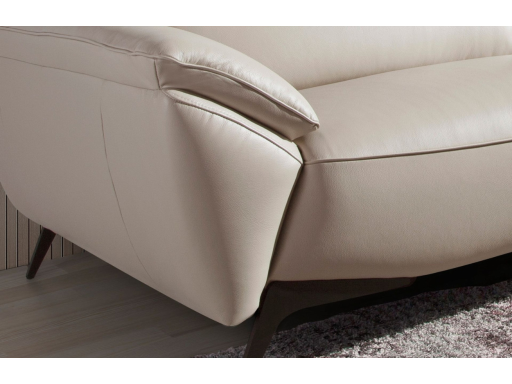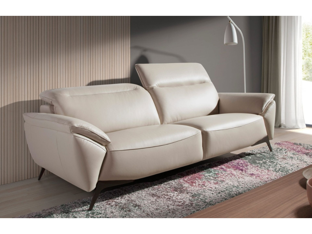 Tato moderní šedobéžová pohovka s čalouněním z hovězí kůže přinese do vašeho interiéru čisté linie a nadčasovou eleganci. Nezávislé kloubové opěrky hlavy vám umožní upravit si pohodlí přesně podle svých potřeb, ať už při relaxaci s knihou nebo sledování oblíbeného filmu. Černá podnož z nerezové oceli dodá pohovce jemný industriální nádech, který vynikne zejména v minimalistickém prostoru. Kombinace kvalitní kůže a výplně z odolných materiálů zajistí dlouhou životnost a příjemný komfort. Díky pečlivému zpracování konstrukce z masivního borovicového dřeva se pohovka stane stabilním základem vašeho obývacího pokoje.