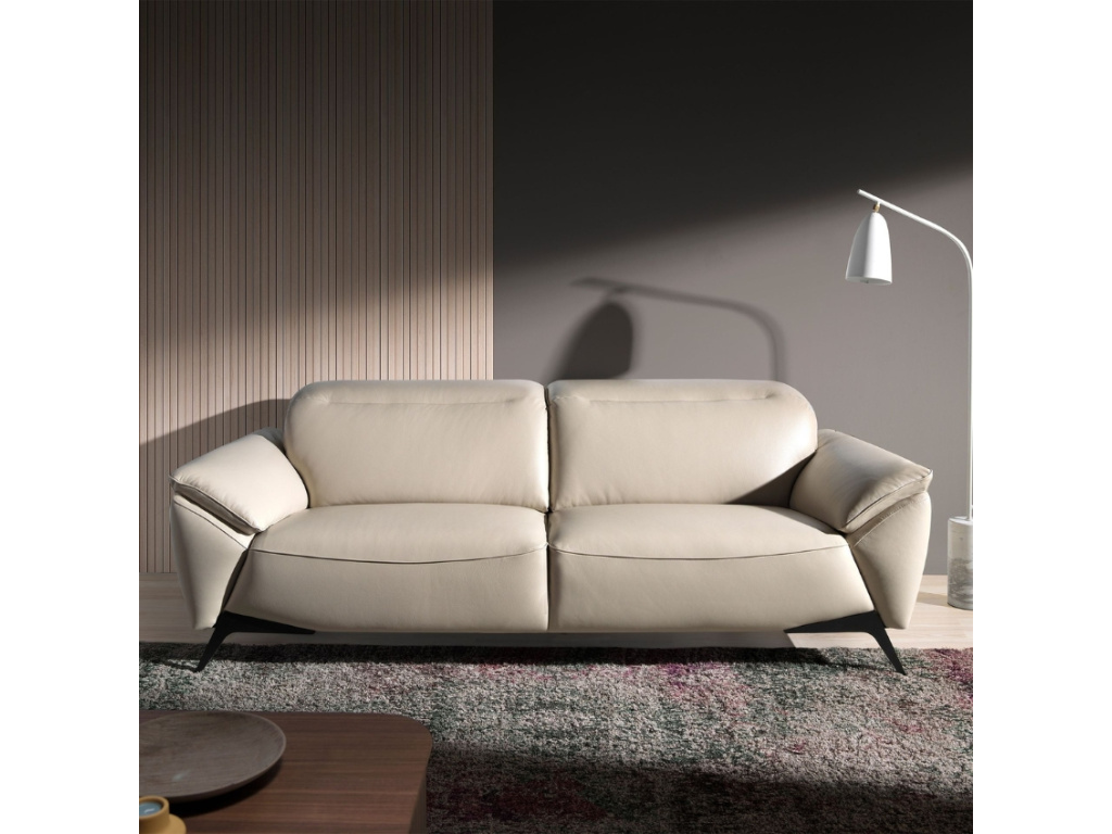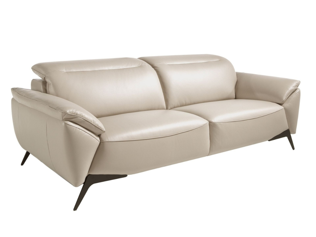 Tato moderní šedobéžová pohovka s čalouněním z hovězí kůže přinese do vašeho interiéru čisté linie a nadčasovou eleganci. Nezávislé kloubové opěrky hlavy vám umožní upravit si pohodlí přesně podle svých potřeb, ať už při relaxaci s knihou nebo sledování oblíbeného filmu. Černá podnož z nerezové oceli dodá pohovce jemný industriální nádech, který vynikne zejména v minimalistickém prostoru. Kombinace kvalitní kůže a výplně z odolných materiálů zajistí dlouhou životnost a příjemný komfort. Díky pečlivému zpracování konstrukce z masivního borovicového dřeva se pohovka stane stabilním základem vašeho obývacího pokoje.