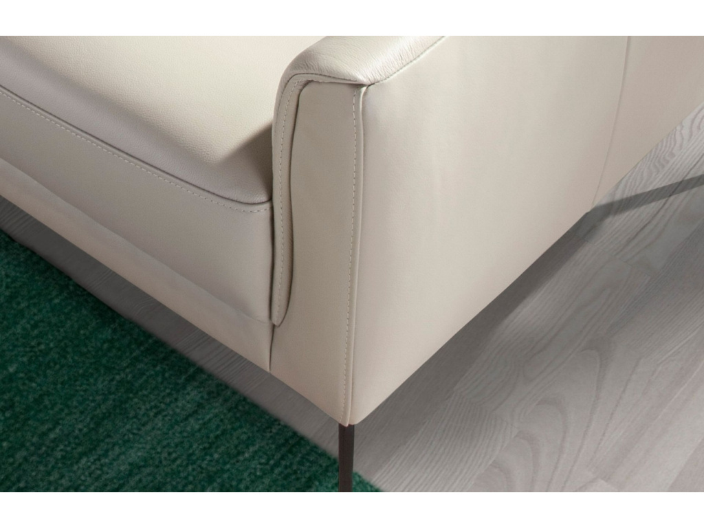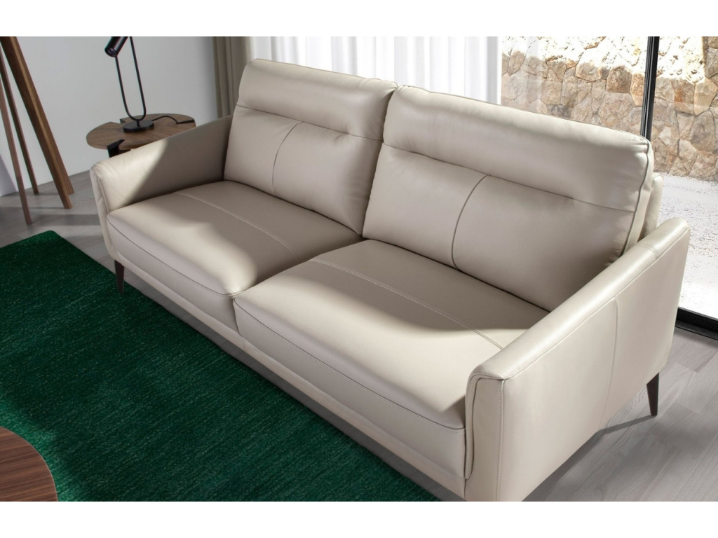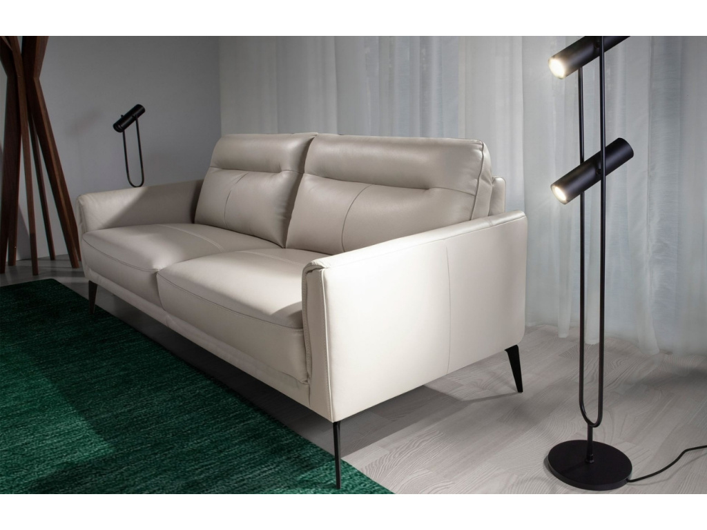 Váš obývací pokoj získá s touto šedobéžovou koženou pohovkou moderní a vkusný akcent. Elegantní čalounění z hovězí kůže nabídne nejen výjimečný komfort, ale také skvělou odolnost vůči každodennímu používání. Jemné linie designu doplňuje podnož černé nerezové oceli, která přidá pohovce lehkost a šarm. Díky stabilní konstrukci z masivního borovicového dřeva budete mít jistotu, že vám bude sloužit po mnoho let. Tato pohovka se stane středobodem každého prostoru, kde bude převažovat minimalistická nebo industriální estetika.