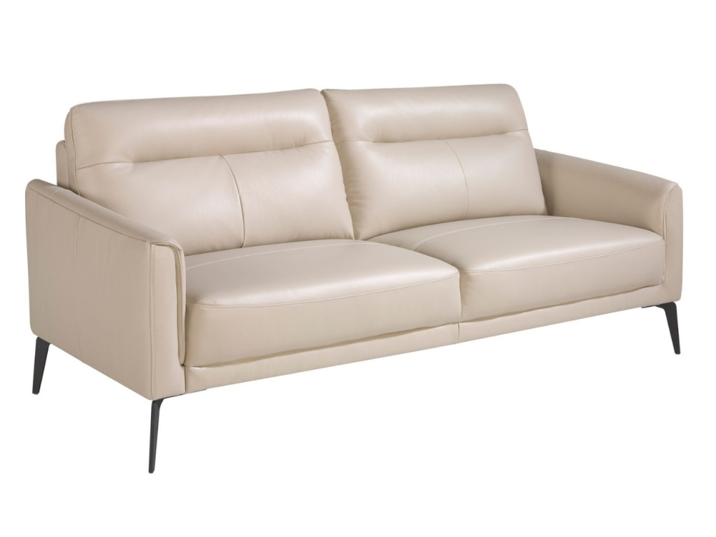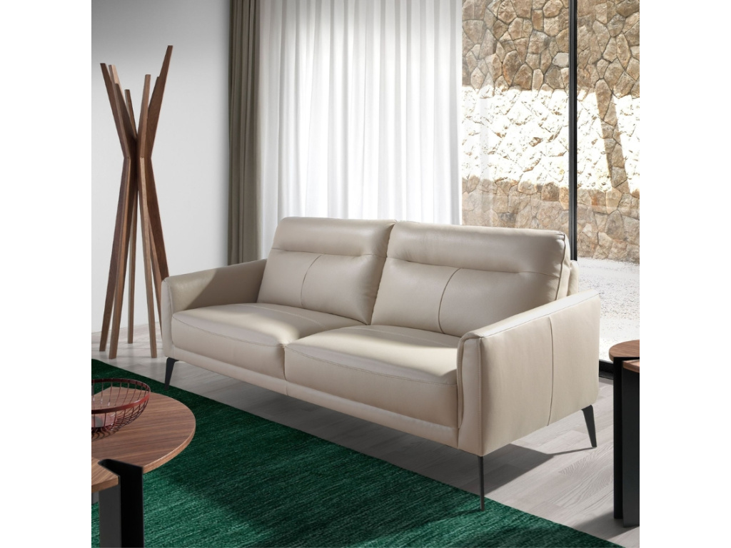 Váš obývací pokoj získá s touto šedobéžovou koženou pohovkou moderní a vkusný akcent. Elegantní čalounění z hovězí kůže nabídne nejen výjimečný komfort, ale také skvělou odolnost vůči každodennímu používání. Jemné linie designu doplňuje podnož černé nerezové oceli, která přidá pohovce lehkost a šarm. Díky stabilní konstrukci z masivního borovicového dřeva budete mít jistotu, že vám bude sloužit po mnoho let. Tato pohovka se stane středobodem každého prostoru, kde bude převažovat minimalistická nebo industriální estetika.