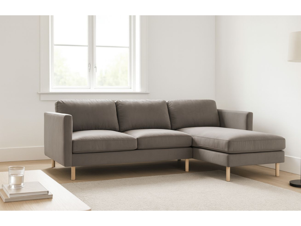 Rohová trojmístná pohovka Eden spojuje skandinávský design s výjimečným pohodlím a kompaktními rozměry. Díky čistým liniím, elegantním područkám a zaoblené dřevěné podnoži působí lehce a vzdušně, což z ní dělá ideální volbu do menších interiérů. Přestože nezabere mnoho místa, nabízí útulné a komfortní sezení, které vybízí k odpočinku. Sedací část je vyplněna přírodním peřím, které poskytuje měkkost a příjemnou oporu při každodenním lenošení. Sametové čalounění Paris má mimořádně hebký povrch a jemný lesk, který v závislosti na dopadu světla vytváří elegantní stínování. Pohovka je navíc pečlivě vyrobená na zakázku v Evropě, což zaručuje vysokou úroveň zpracování a dlouhou životnost. Sezení Eden se hodí do moderních bytů, skandinávsky laděných obývacích pokojů i stylových kanceláří nebo čtecích koutků. Skvěle ji doplní odkládací stolek z přírodního dřeva, měkký polštář nebo pléd v tlumených tónech, které podtrhnou jemnost sametu.