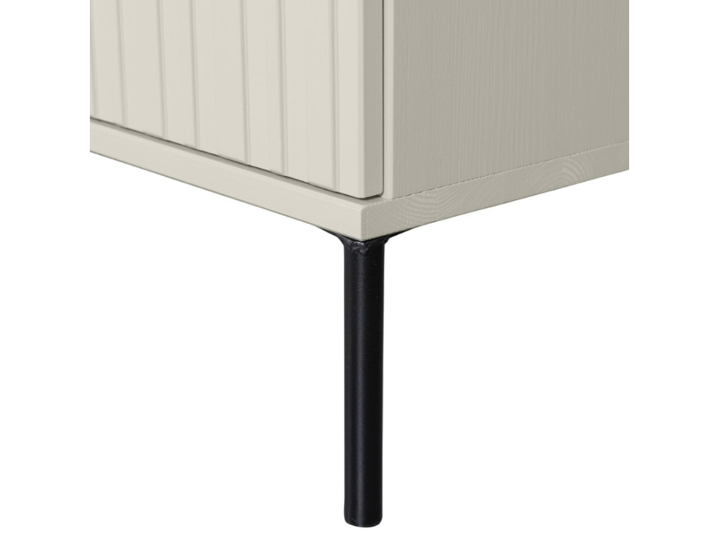 TV stolek Gravi ze stejnojmenné řady nábytku nabízí jedinečný design a praktický úložný prostor v podobě šesti prostorných polic. Police jsou schovány za třemi dvířky se systémem otevírání push to open. Zajímavý motiv žebrování podtrhne celkový dojem stolku a dodá mu elegantní a rustikální vzhled. Šedobéžový odstín laku borovicového dřeva vnese do vašeho obývacího pokoje pocit klidu a útulna. Jemná inspirace retro stylem dodá celému prostoru osobitý charakter.