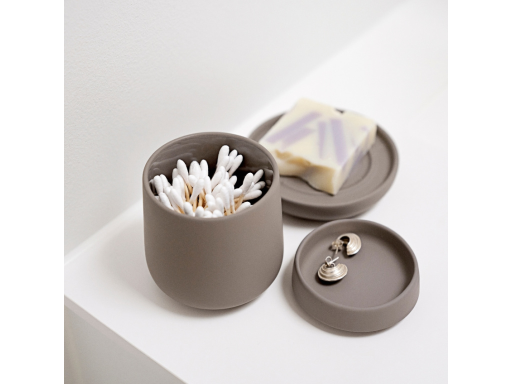 Uzavíratelný organizér do koupelny Nova One od dánské značky Zone Denmark esteticky skryje menší předměty a ochrání je před vlhkostí. Designový box se skládá z minimalistického kelímku a prohloubeného víka, které může sloužit i jako malá miska. Potěší vás jistě také pevný a odolný materiál z matné kameniny. Koupelnový organizér s víkem můžete využít například jako zásobník na vatové tyčinky nebo odličovací tampony. Vybírejte až ze sedmi barevných variant.