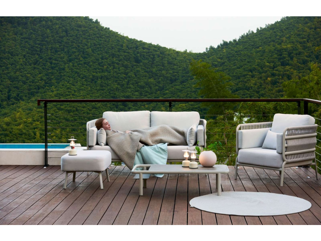 Relaxujte a odpočívejte v náručí zahradní pohovky, kterou si zamilujete. Představujeme vám zahradní pohovku Mindo 106 s lehkou hliníkovou konstrukcí. Tento unikátní kousek osvěží vzhled vaší zahrady, terasy i balkonu, a to především díky nadčasovému designu a komfortnímu sedáku a opěradlu. Látka Sunbrella je zárukou odolnosti a vytouženého pohodlí. Její vlastnosti oceníte zejména při silném letním slunci i při nepřízni počasí. Za vznikem pohovky Mindo 106 stojí designéři z Odos Design, kde si pro vás připravili další designové kousky, se kterými pohovka vytvoří jedinečný designový zážitek.