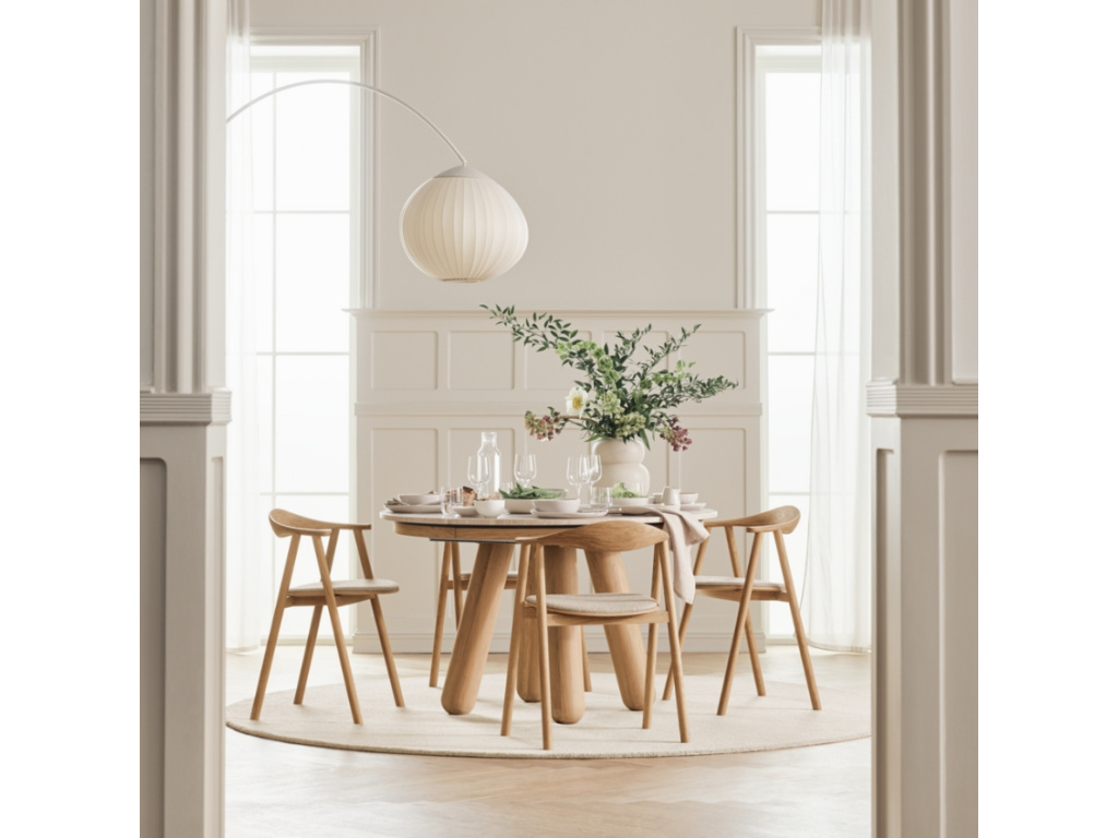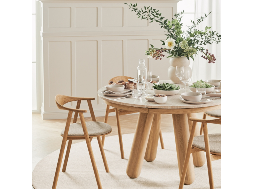Za kolekcí jídelních stolů Balance stojí Michael H. Nielsen, který si zakládá na kreativitě, udržitelnosti a preciznosti. Tato jedinečná série stolů mistrně kombinuje různé druhy dřeva, přírodní materiály a hravé detaily, které společně tvoří harmonický a nezaměnitelný celek. Kombinace pečlivě vybraných přírodních materiálů, jako je masivní dubové dřevo, elegantní mramor nebo hřejivý travertin, vytváří jedinečné kontrasty, které okamžitě zaujmou. Použité dřevo pochází z certifikovaných, odpovědně obhospodařovaných lesů a každý kus je výsledkem tradičního řemeslného umění, které ctí udržitelné výrobní postupy. Tento přístup nejen že zaručuje vynikající kvalitu, ale zároveň podporuje ekologickou odpovědnost. Jídelní stůl Balance se umí přizpůsobit každé situaci. Díky integrovaným nástavcům lze snadno prodloužit jeho délku téměř na dvojnásobek, takže bez problémů pohostíte rodinu i přátele. Jeho precizní proporce, jemné hrany a čisté linie z něj činí dokonalý doplněk moderních i klasických interiérů. Dopřejte si dokonalou harmonii přírody, designu a funkčnosti.