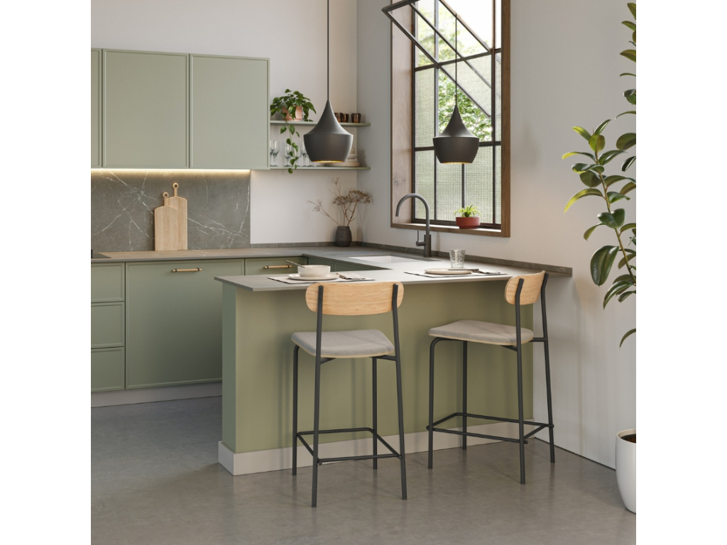 Barová židle Marckeric Adriana s čalouněným sedákem se pyšní kombinací dřevěného dekoru a zajímavého odstínu šedohnědé barvy – taupe. Elegantně tvarovaná konstrukce se štíhlými liniemi přinese k vašemu barovému stolu nebo kuchyňskému ostrůvku svěží závan moderního designu. A pokud máte doma také klasický jídelní stůl, můžete celý prostor sladit a pořídit si ji také v menším jídelním provedení! V náručí těchto kousků si vychutnáte každé jídlo v pohodlí.