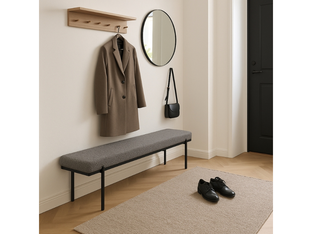Šedohnědá bouclé lavice Lao je dokonalým spojením elegance a funkčnosti. Výrazná textura bouclé látky přinese do interiéru nádech luxusu, zatímco černá ocelová podnož dodává lavici perfektní stabilitu a moderní vzhled. Díky svému všestrannému designu se skvěle hodí do předsíně, do nohou postele nebo jako stylové sezení k obdélníkovému stolu v jídelně. Tato lavice je navíc dostupná i v provedení s koženkovým a sametovým čalouněním.