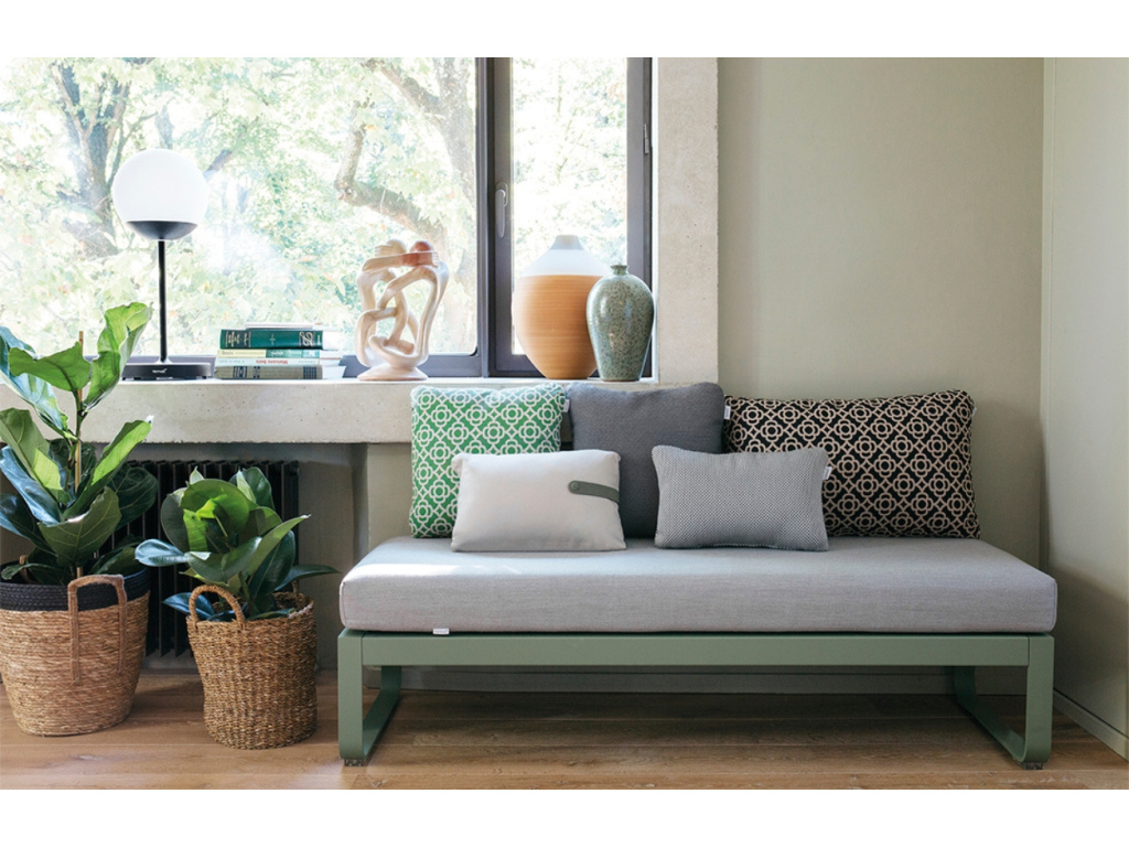 Více infoŠedohnědá čalouněná lavice Fermob Bellevie 148 cm s kaktusově zelenou podnoží