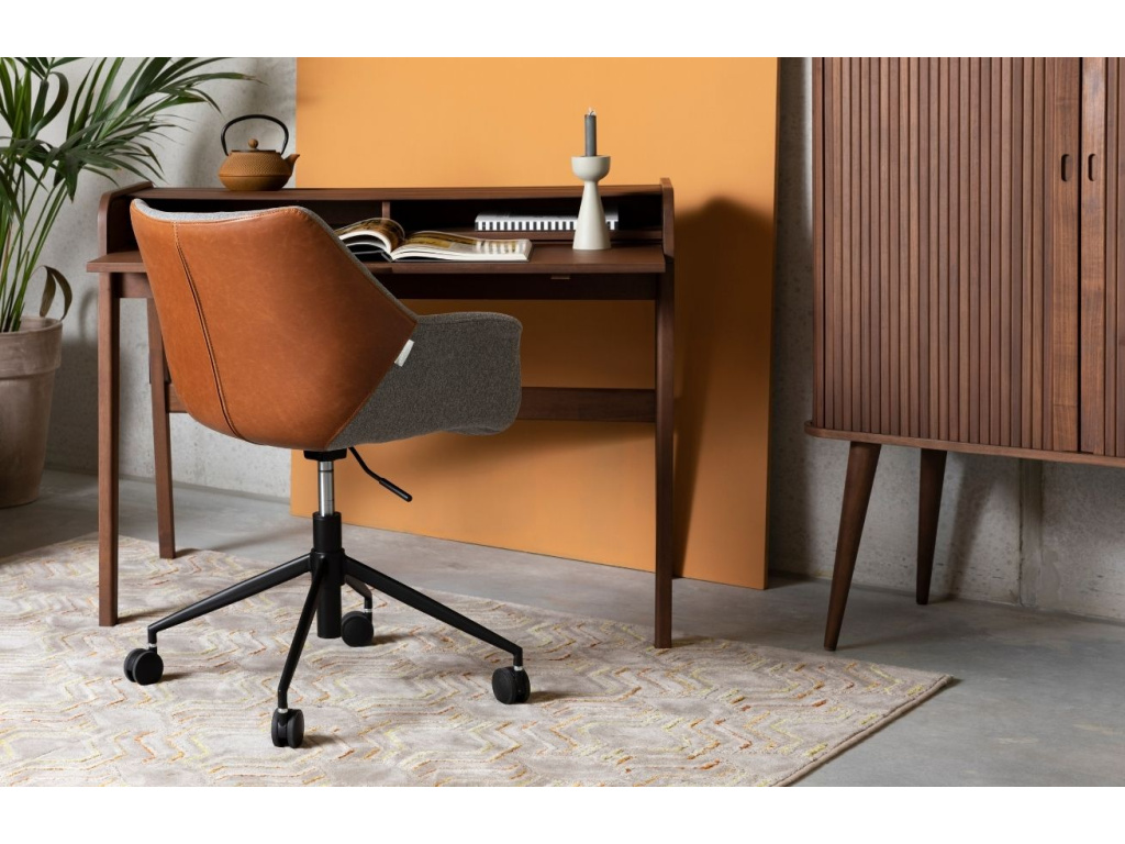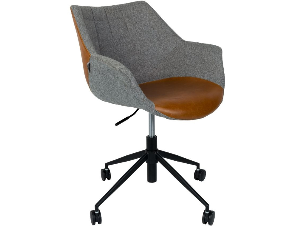 Otočná, výškově nastavitelná kancelářská židle ZUIVER DOULTON kombinující šedou látku a hnědou ekokůži. Doulton Vás zaujme především pohodlným sezením i v delším časovém horizontu díky pevnému překližkovému rámu s polstrovaným čalouněním. Ocelová podnož s kolečky poskytující perfektní stabilitu a v synchronizaci se sedákem.
