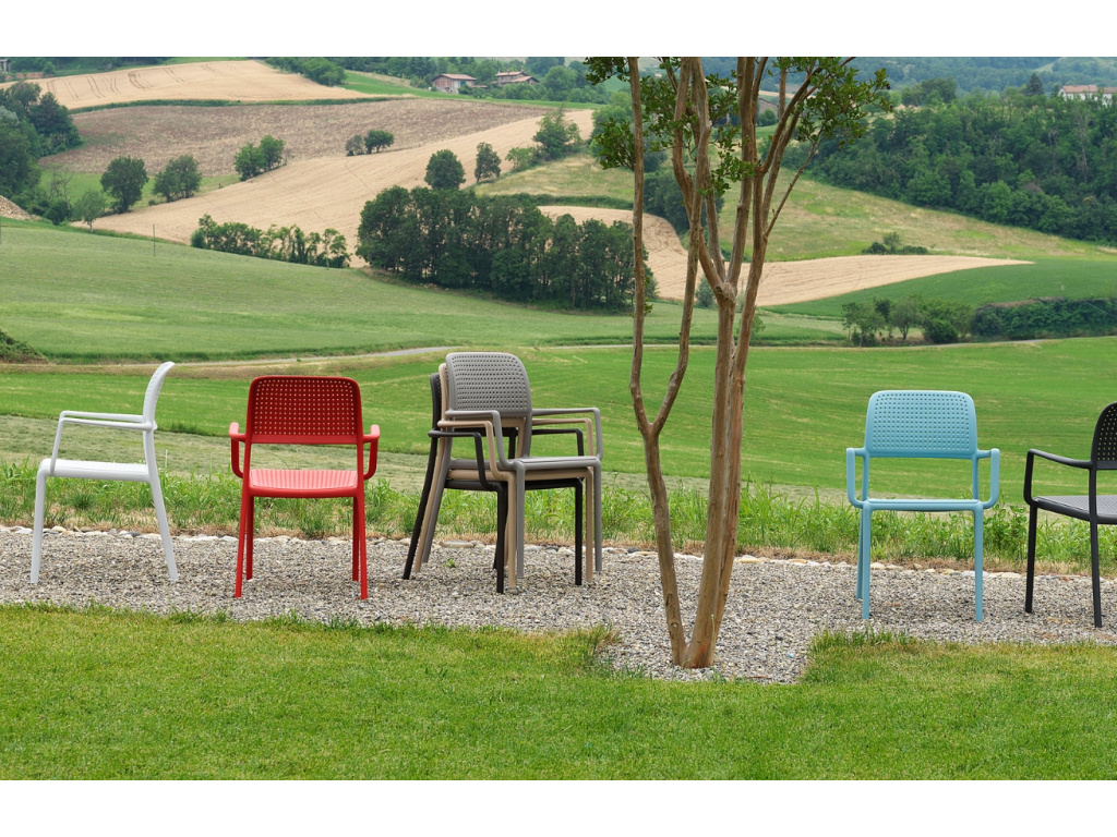 Zahradní židle Bora s područkami je moderní kousek nábytku, který díky použitému materiálu oceníte nejen v interiéru, ale i na vaší terase či v zahradě. Jednoduché barevné provedení a působivý design dělá z této židle nadčasový prvek, který rozhodně neomrzí. Židle Bora je dostupná v několika barevných variantách. Vychutnejte si zasloužený komfort a styl židle i u vás doma. Bora se skvěle hodí jak do komerčních, tak i nekomerčních prostor.