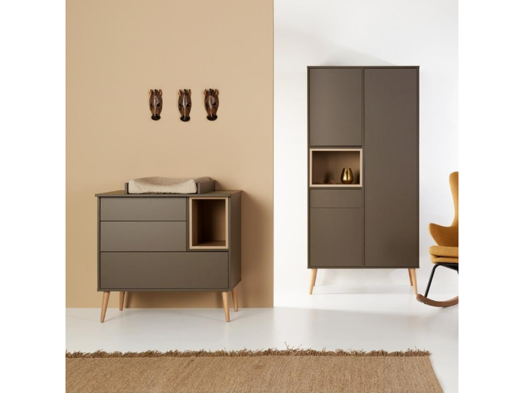 Moderní komoda Quax Cocoon je skvělou volbou do každého dětského pokoje. Moderní tmavý design a velké úložné prostory je ideální kombinace pro každou maminku, která chce mít vše důležité na jednom místě. Plenky, vlhčené ubrousky i oblečení se skvěle schová do tří prostorných zásuvek a poličky. Komodu lze využít samostatně nebo při dokoupení nástavby se z ní rázem stane přebalovací pult. Doporučujeme kombinaci více prvků z řady Cocoon, abyste vytvořili dokonalý kontrast a souhru v interiéru. Komoda Cocoon se skvěle hodí do minimalistických a skandinávských interiérů.
