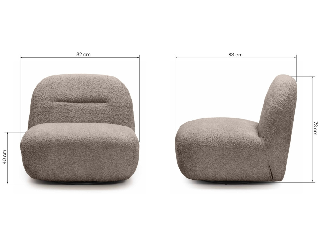Křeslo Bochic zaujme svým výrazným, organickým tvarem, který okamžitě upoutá pozornost. Měkké čalounění z bouclé látky dodává interiéru hřejivost a vizuální jemnost, zatímco zaoblené linie opěradla i sedáku lákají k odpočinku. Díky otočné základně nabízí křeslo naprostou volnost pohybu a pohodlí při každodenním používání. Jeho tvar i proporce jsou navrženy tak, aby poskytovaly maximální komfort a zároveň působily jako elegantní designový prvek. Bochic se skvěle hodí do minimalistických i scandi interiérů – ať už stojí samostatně, nebo jako součást relaxačního koutu, vždy se stane nepřehlédnutelným středem pozornosti. Křeslo, které propojuje styl, funkčnost a pocit domova – to je Bochic.