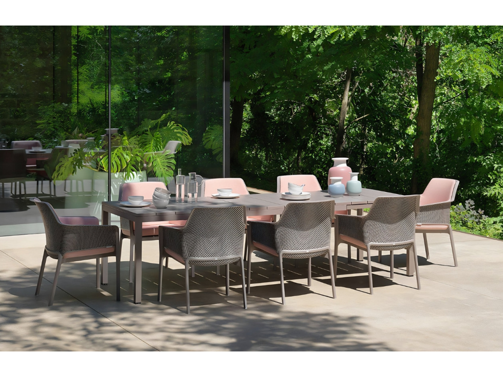 K vašim venkovním oslavám můžete zasednout u rozkládacího stolu Rio značky Nardi, který se díky jednoduché rozkládací funkci snadno prodlouží až do šířky 280 cm. Kromě provedení s deskou z lakovaného hliníku nyní značka Nardi přichází také s verzí DurelTOP. Tato deska je vyrobena z odolného polypropylenu, vyvinutého s cílem dosáhnout nejvyšší úrovně praktičnosti, odolnosti a elegance. Navíc je tento materiál odolný vůči vodě i slunečnímu záření a snadno se čistí – zkrátka je jako stvořený pro exteriérové využití. Stůl se tak skvěle hodí nejen pro domácí rodinné oslavy a grilovačky, ale také pro komerční využití – co takhle k němu usadit hosty na zahrádce vaší kavárny nebo restaurace?