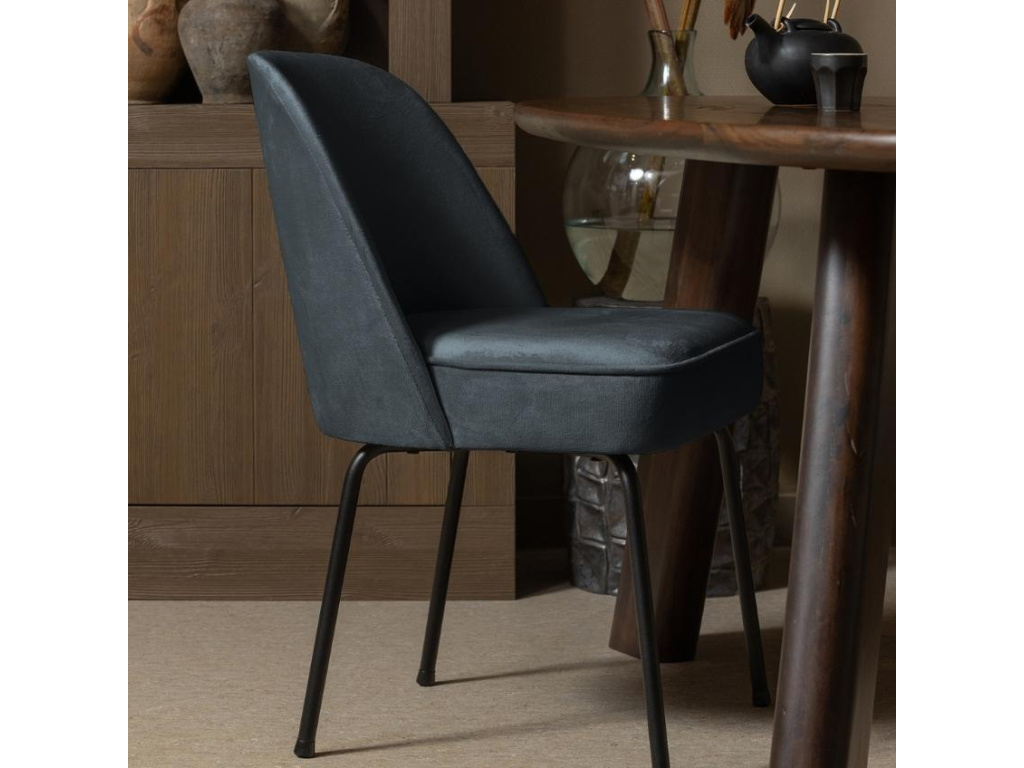 Židle Tergi je působivou židlí v moderním stylu se sametovým čalouněným sedákem šedo modré barvy a černě lakovanou kovovou podnoží. Kombinace kvalitní potahové látky, která je velmi příjemná na dotek, a stabilní podnože tvoří velmi atraktivní spojení, které zaujme nejen na pohled, ale také svým komfortem. Židle Tergi zútulní váš interiér a dodá mu nadčasový design a osobitou atmosféru.