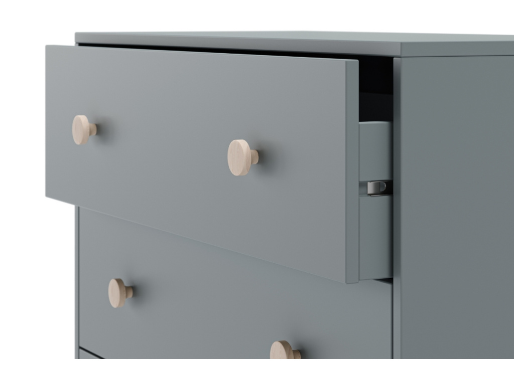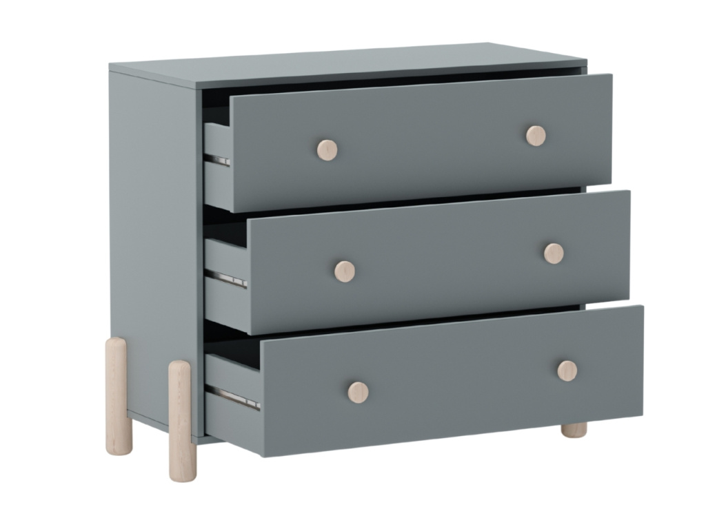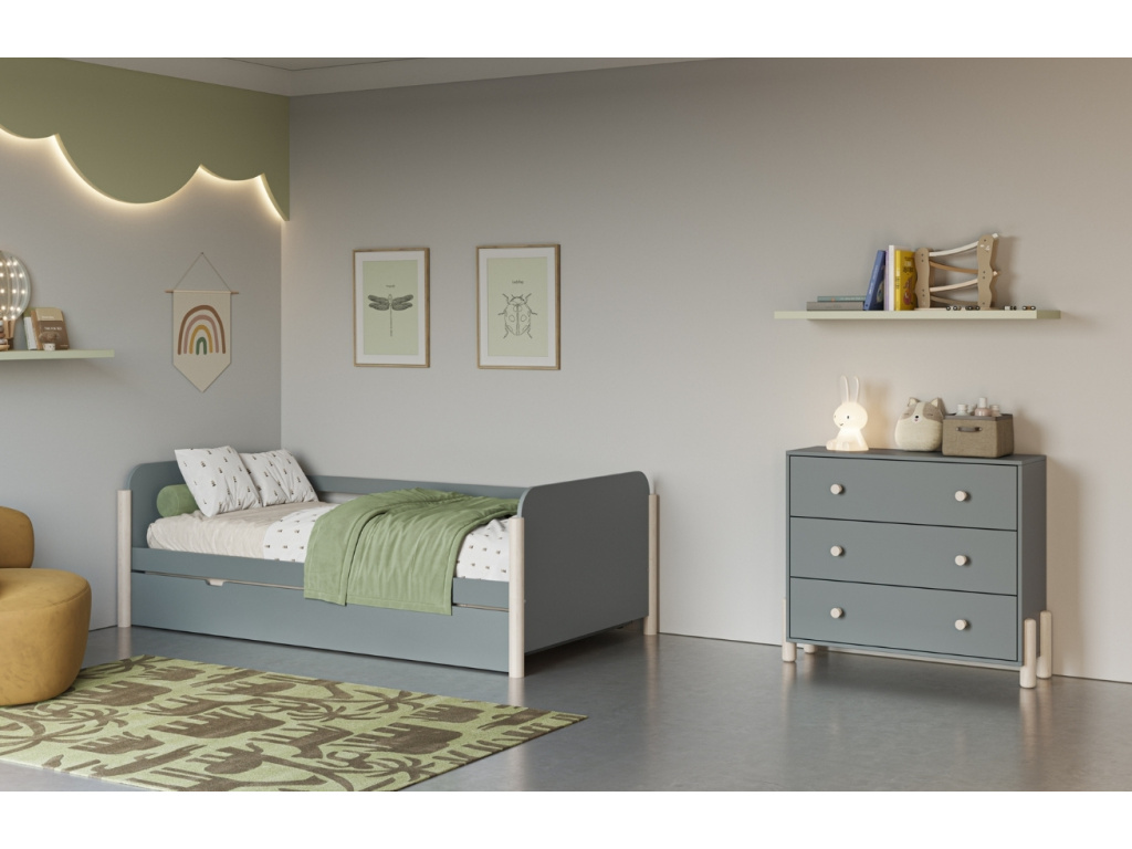 Komoda Enola od značky Marckeric v khaki odstínu se stane elegantním a minimalistickým kouskem v dětském pokoji vašeho dítěte. Její čisté linie a zásuvky s dřevěnou úchytkou působí mile a snadno se budou otevírat i dětským ručkám. Stylová podnož z borovicového dřeva dodává stolku stabilitu i přírodní akcent. Kolekce Enola zahrnuje šatní skříň, noční stolek, komodu, a rozkládací či klasickou jednolůžkovou postel – to vše ve dvou barevných provedeních, která snadno sladíte s interiérem dětského pokoje.