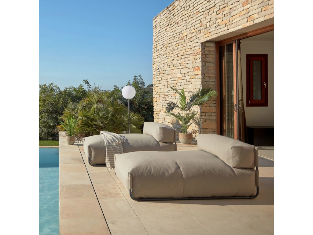 Modulární série Square je navržena tak, aby vám dala absolutní svobodu při vytváření dokonalé chill-out zóny. Jednotlivé moduly můžete snadno kombinovat a vytvořit tak pohovku, rohovou sestavu nebo otevřené sezení v libovolné velikosti. Produkty jsou plně přizpůsobeny venkovnímu použití – lehká hliníková konstrukce se snadno přemisťuje, zatímco kvalitní outdoorová látka s ochranou proti vlhkosti a ventilačními otvory zajišťuje pohodlí i dlouhou životnost. Odnímatelné potahy lze prát v pračce, takže údržba je maximálně jednoduchá. Design série je dílem Jordi Díaz z týmu Kave Home a pyšní se promyšlenými detaily, čistými liniemi a nadčasovým vzhledem. Square je ideální volbou pro terasy a zahrady, ale klidně i moderní interiéry – praktická, funkční a minimalistická kolekce, která se přirozeně přizpůsobí každému prostoru.