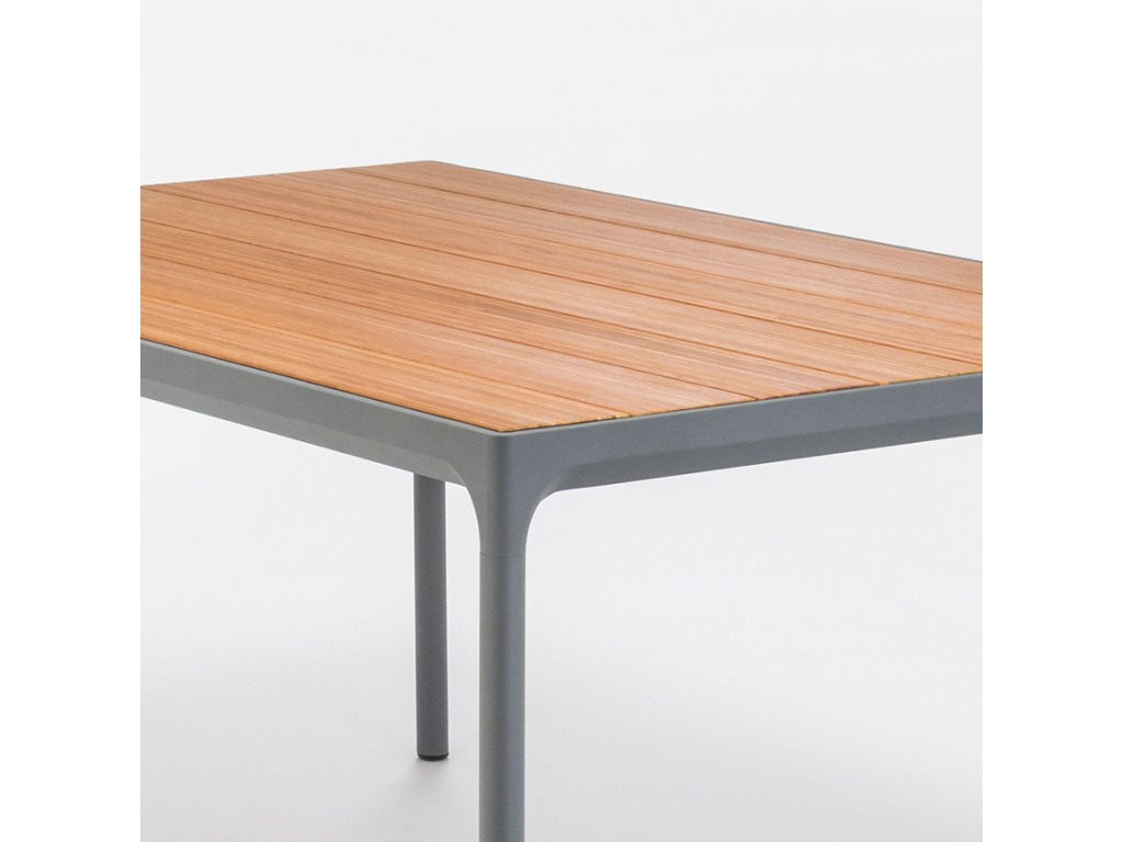 Přírodní jídelní stůl HOUE Four s deskou z bambusových lamel a šedě lakovanou podnoží je moderní, minimalisticky řešený stůl, který velmi dobře doplní interiéry s industriálními prvky i prvky moderního designu. Hledáte-li stylový jídelní stůl do menší kuchyně, na terasu nebo do veřejného prostoru vaší kavárny, restaurace či baru, je tento stůl výbornou volbou.
