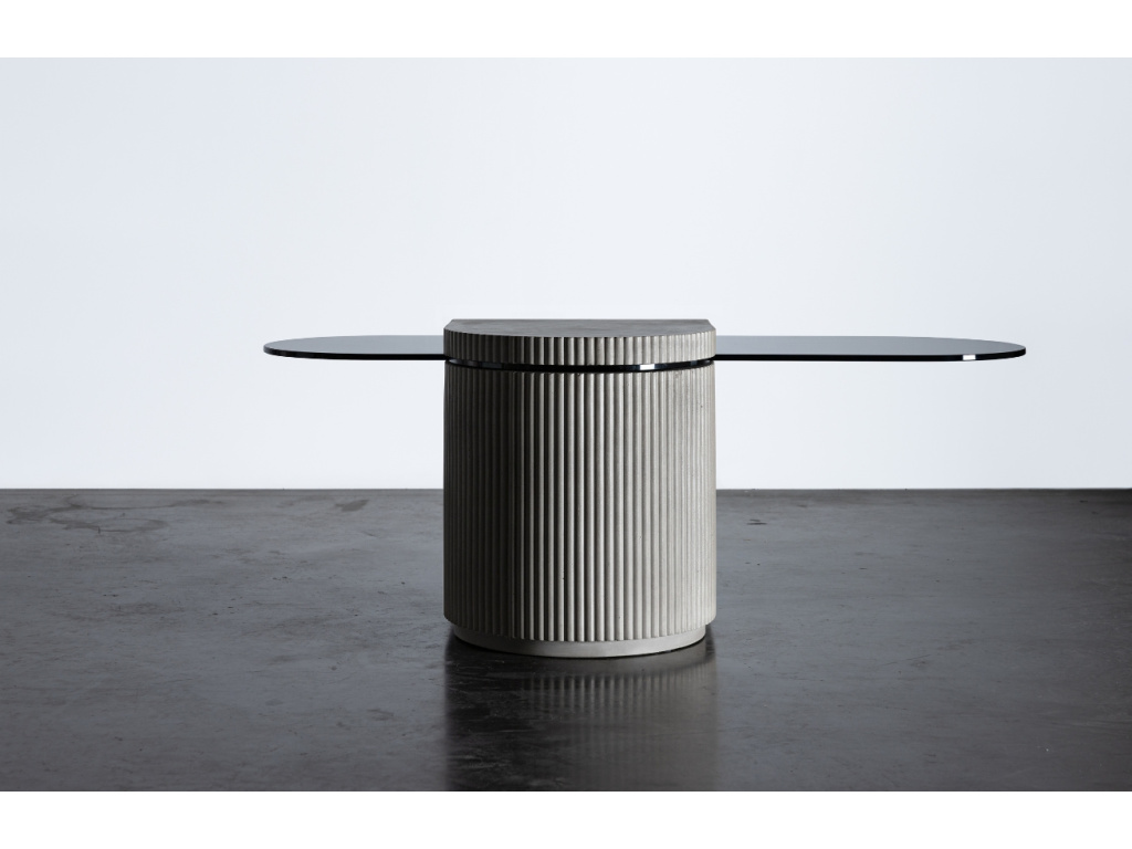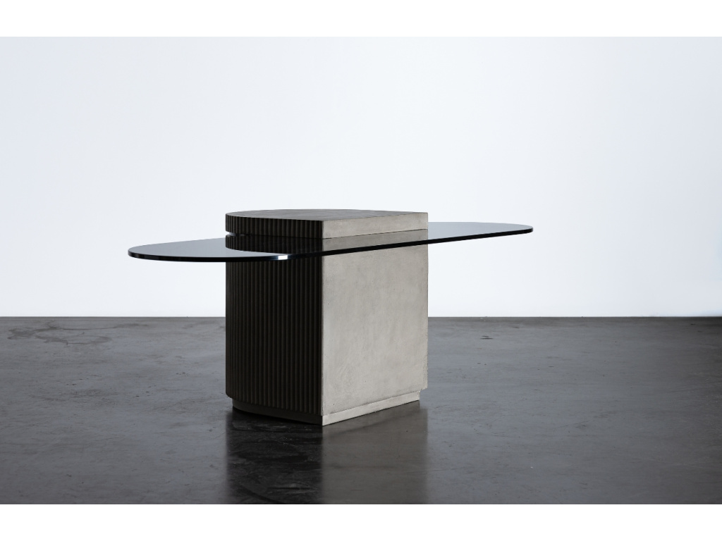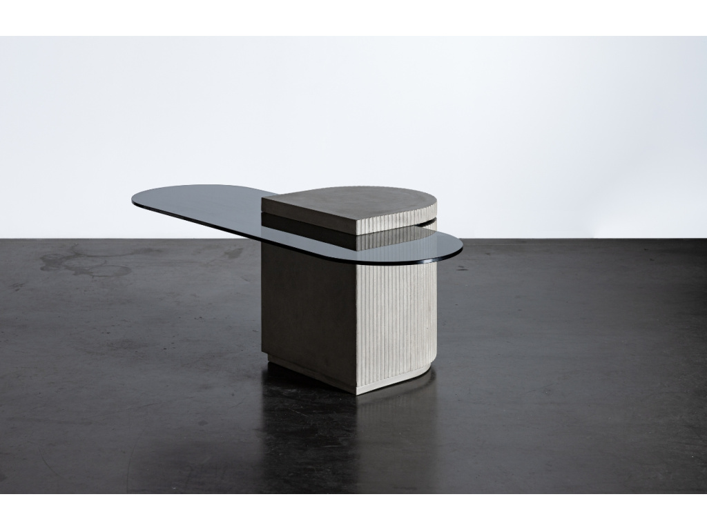 Lyon Béton a designér Bertrand Jayr se spojili, aby vám přinesli víceúčelový konferenční stolek Strut. Strut má skleněnou desku připevněnou k betonovému podstavci, která vytváří jeviště pro předvádění dekorativních předmětů a dalších uměleckých prvků. Drážkování podstavce dodává podnoži jedinečnou texturu. Stolní deska z tónovaného skla plní v této hře kontrastů svou vlastní roli. Stolní desku ve tvaru čtverce lze obrátit, což vašemu stolu pomůže zapadnout do mnoha různých druhů interiérů. Umístěte jej samostatně do malého obývacího pokoje nebo jej zkombinujte s jinými nízkými konferenčními stolky. Záleží jen na vás.