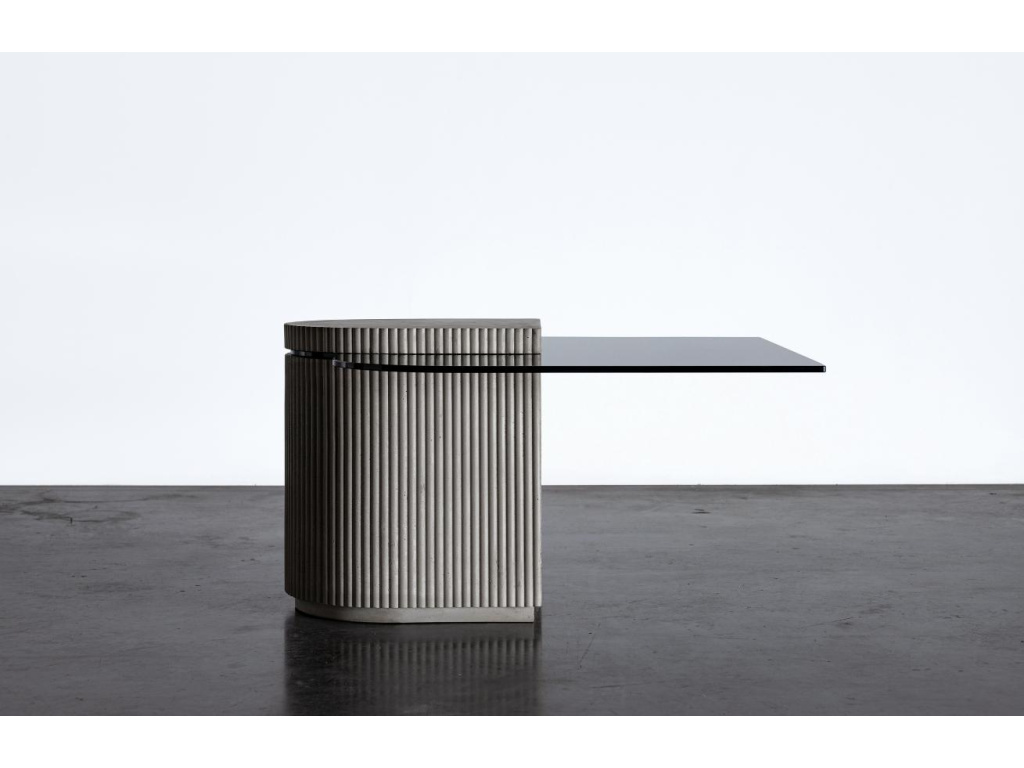 Lyon Béton a designér Bertrand Jayr se spojili, aby vám přinesli víceúčelový konferenční stolek Strut. Strut má skleněnou desku připevněnou k betonovému podstavci, která vytváří jeviště pro předvádění dekorativních předmětů a dalších uměleckých prvků. Drážkování podstavce dodává podnoži jedinečnou texturu. Stolní deska z tónovaného skla plní v této hře kontrastů svou vlastní roli. Stolní desku ve tvaru čtverce lze obrátit, což vašemu stolu pomůže zapadnout do mnoha různých druhů interiérů. Umístěte jej samostatně do malého obývacího pokoje nebo jej zkombinujte s jinými nízkými konferenčními stolky. Záleží jen na vás.