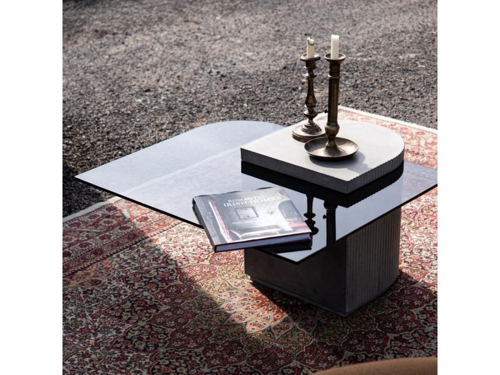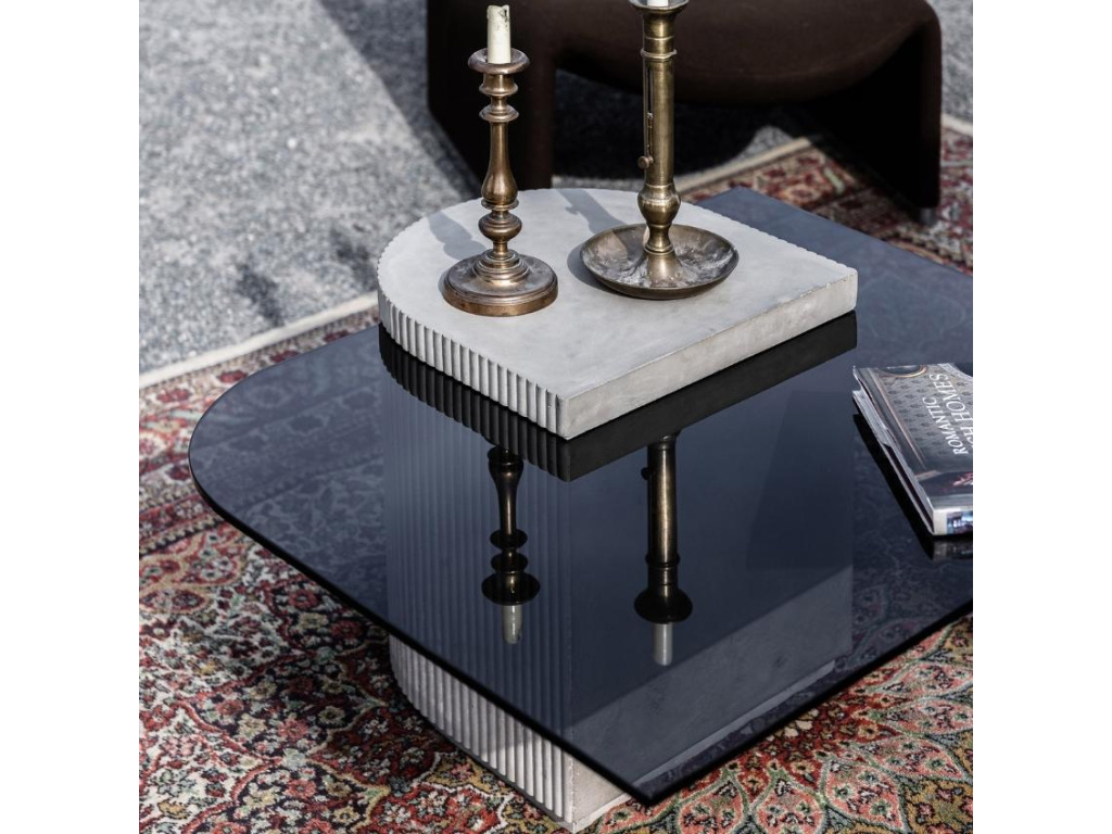 Podívám seŠedý betonový konferenční stolek Lyon Béton Strut 80 x 85 cm se skleněnou deskou