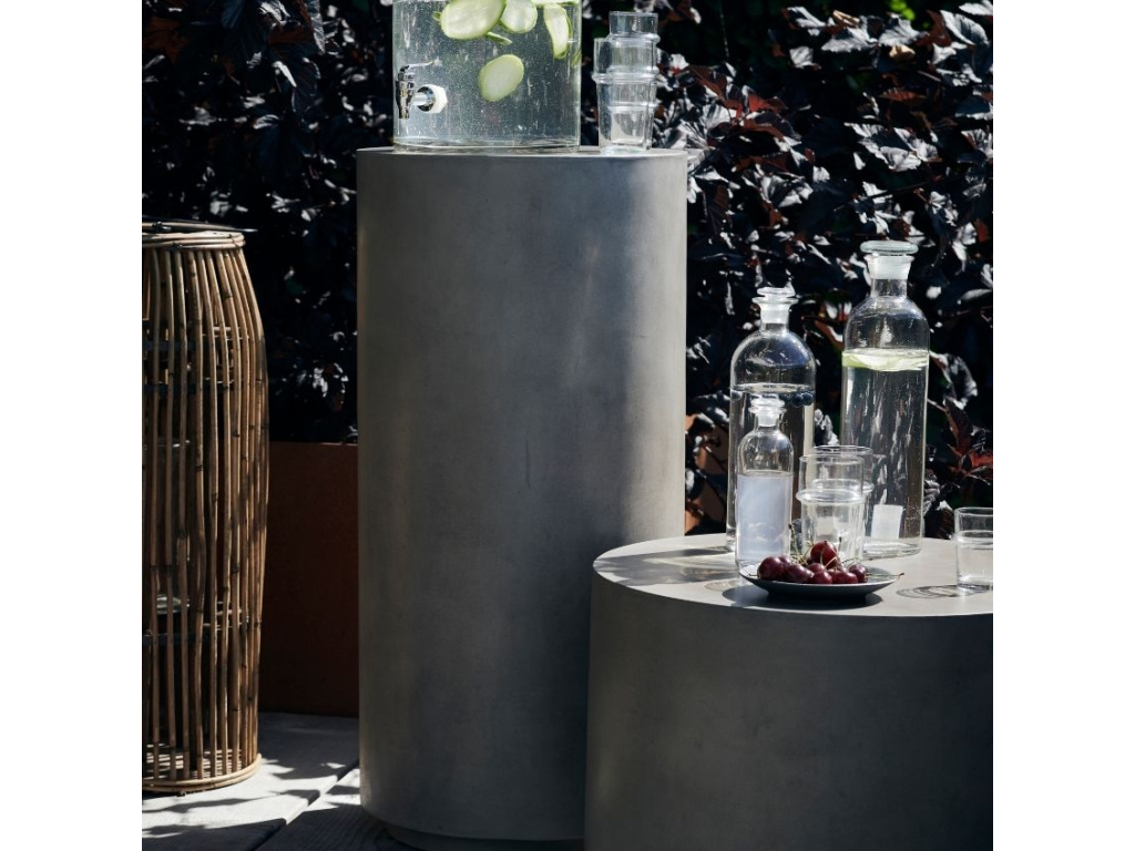 Betonový podstavec Out je vhodný pro vnitřní i venkovní využití. V obývacím pokoji vedle pohovky nebo na chodbě se na něm bude vyjímat stolní lampa, venku může být použit jako servírovací stůl. Skvěle bude vypadat v kombinaci se zbytkem betonového nábytku od House Doctor. Materiál není mrazuvzdorný.