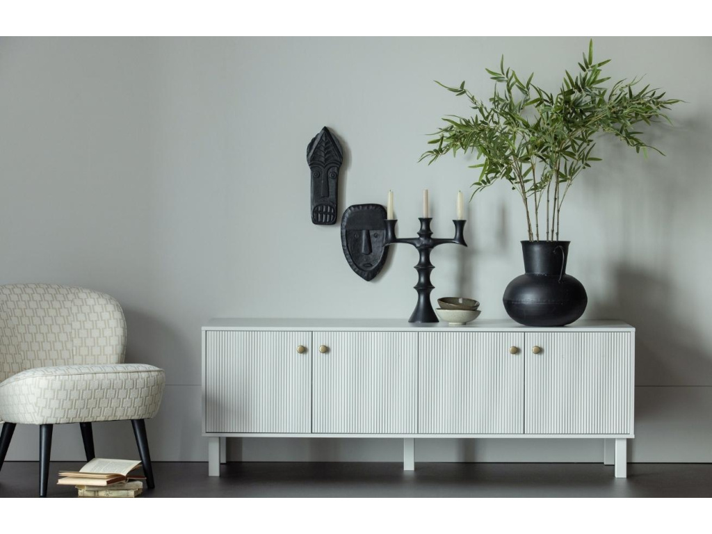 Flo je stylový, moderní TV stolek od značky Hoorns vyroben z borovicového dřeva s povrchovou úpravou v šedé barvě. Zlaté knoflíkové úchytky dodávají stolku bytelný a nadčasový charakter. Úložný prostor TV stolku Flo sčítá čtyři prostorné police. Stolkem Flo rozjasníte svůj moderní interiér a dodáte mu osobitost a styl.