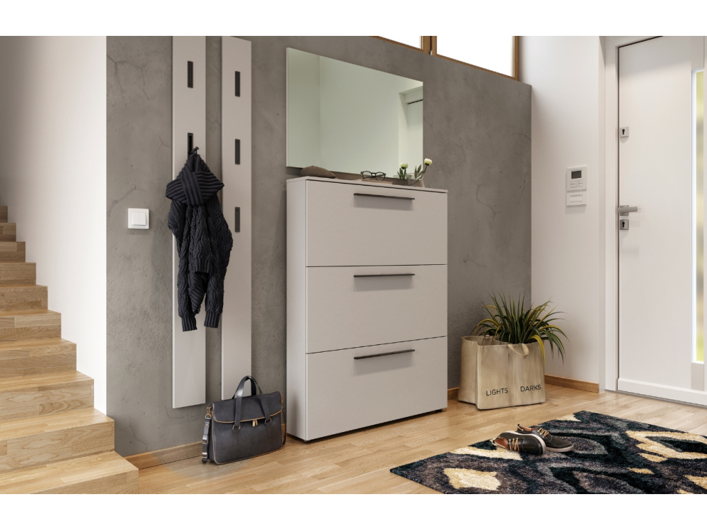 Designový botník Utah vás zaujme svým příjemným vzhledem. Je vyrobený z laminátu a na originalitě mu dodávají černé kovový úchytky, které v kombinaci s šedě lakovaným korpusem botníku vypadají skvěle. Botník Utah přinese do vaší předsíně pocit tepla a stane se nezbytnou součástí vašeho domova. Dvě výklopné zásuvky nabízejí prostor pro uložení až 12 párů bot. Botník je ideální především do menších interiérů, kde díky němu získáte praktický prostor pro uložení obuvi.