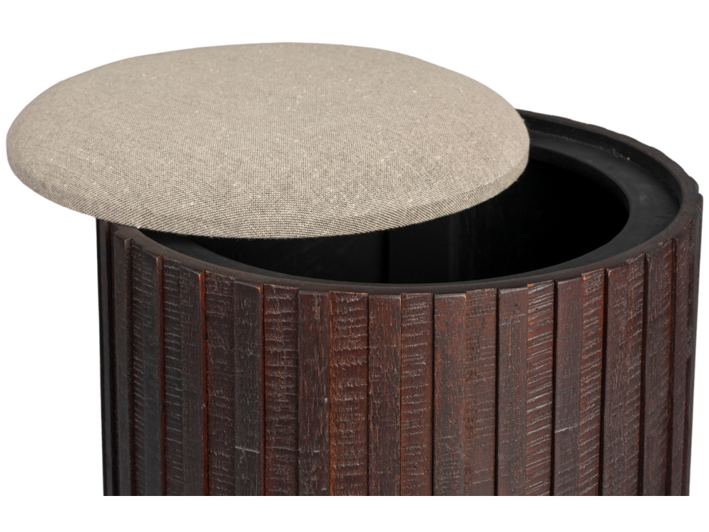 Pořiďte si k sobě domů praktický a multifunkční taburet s úložným prostorem BAY od značky DUTCHBONE. Tělo taburetu je vyrobeno z tmavého teakového dřeva, sedák potom z bavlněné tkaniny. Sedák zároveň slouží jako víko, pod kterým se skrývá úložný prostor, který bude perfektní pro uložení hraček, časopisů, zkrátka čehokoliv, co není třeba mít neustále na očích. V naší nabídce máme také menší variantu taburetu BAY – pořiďte si oba a zkompletujte tak celý set!