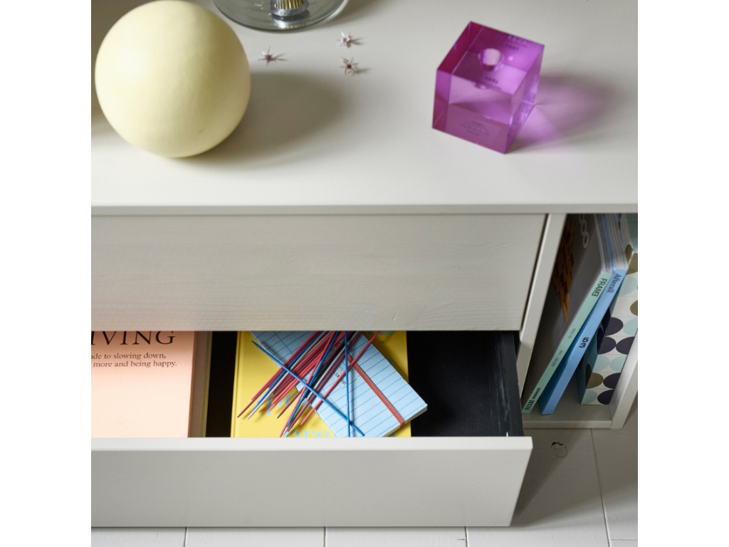 Pokud hledáte TV stolek v minimalistickém stylu, může být Abi tím pravým. Díky jeho jednoduchosti se dobře kombinuje nejen se stylem vašeho obývacího pokoje, ale také dodá vašemu interiéru pocitovou čistotu. Jeho bohatý úložný prostor snadno uskladní veškeré televizní doplňky, které nechcete, aby byly vidět. Naopak v otevřené polici se budou skvěle vyjímat vaše oblíbené knihy. Praktickým detailem je také otvor na kabely, který ocení hlavně hráči herních konzolí.
