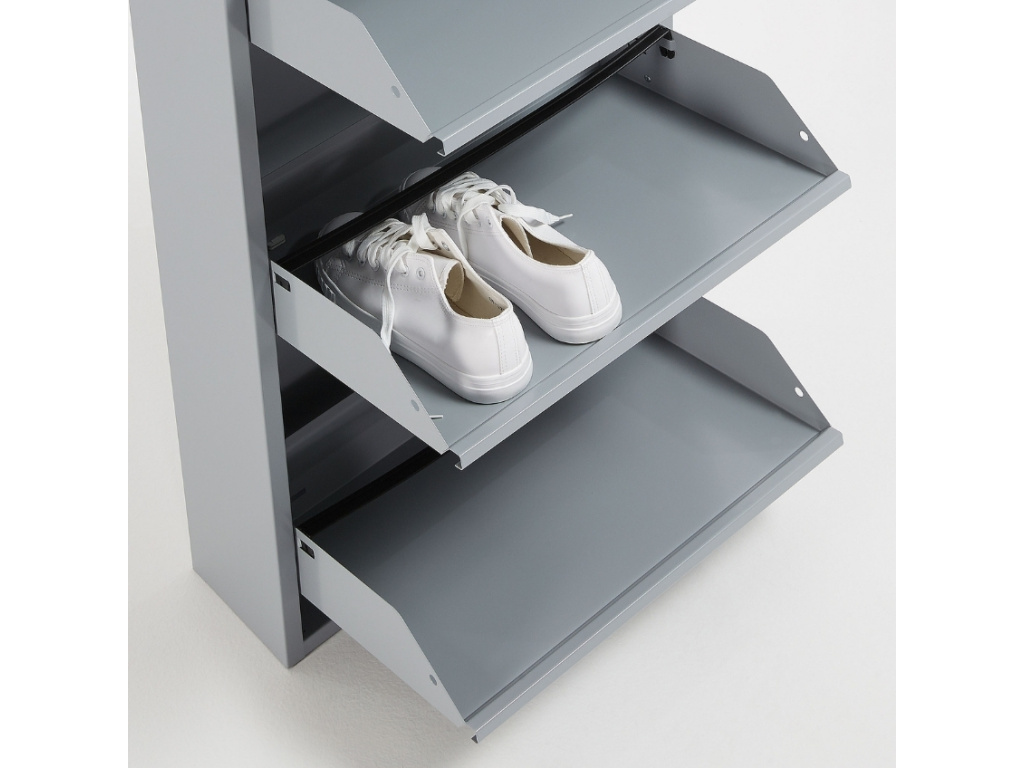 Kovový botník Kave Home Ode si oblíbíte díky jeho minimalismu a velkému úložnému prostoru. V botníku najdete celkem tři výklopné zásuvky, do kterých se vejde až 9 párů bot, a tak vaše předsíň už nikdy nebude zaplněná. Praktickým prvkem je také možnost připevnit botník na zeď. Ode se hodí do moderních, světlých chodeb a předsíní.