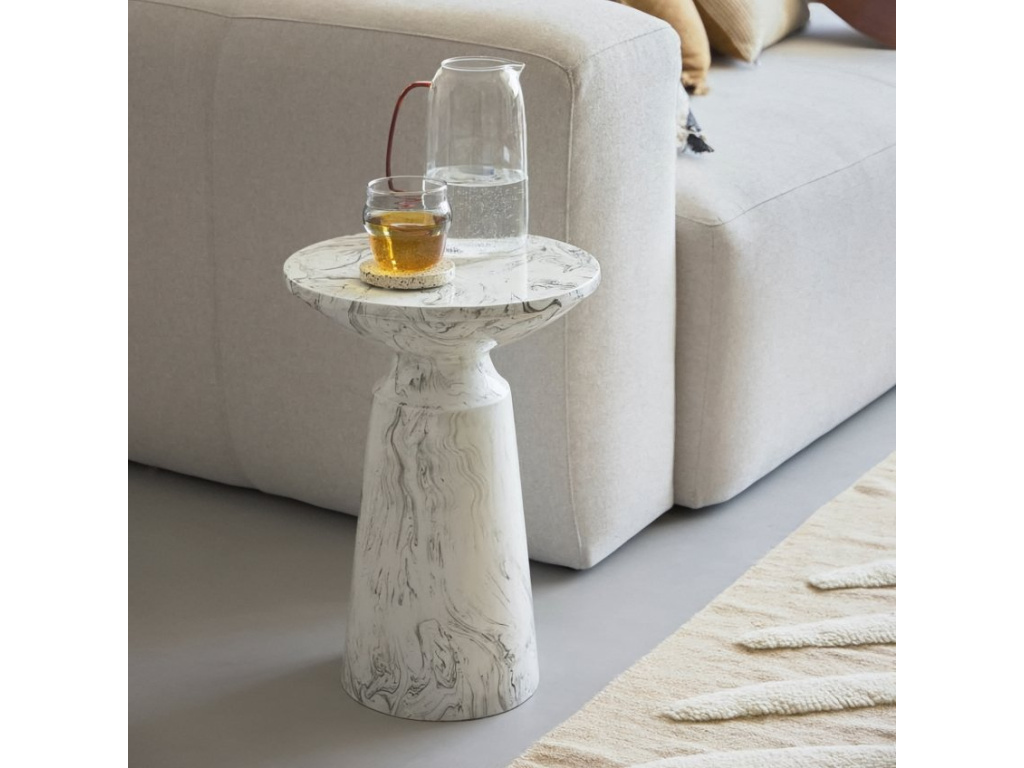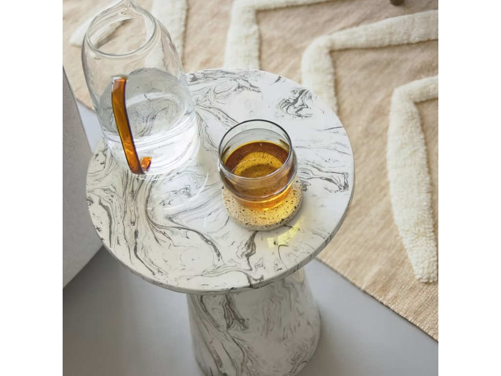 Odkládací stolek Kave Home Kesbury v imitaci mramoru je opravdový designový skvost. Jeho neobvyklý tvar a jedinečné žilkování vytváří z každého produktu originál. Tento stolek dodá každému modernímu i klasickému interiéru prvek elegance a jedinečnosti.