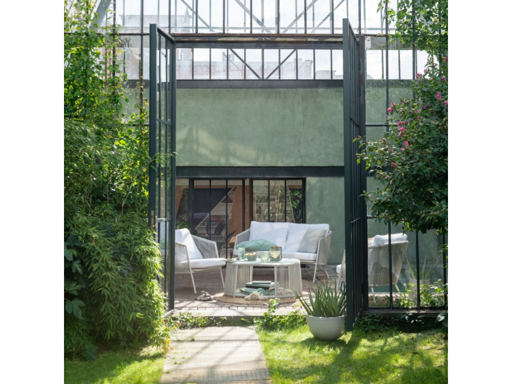 Podívám seŠedý kovový zahradní set pohovky, dvou křesel a stolku J-line Eli