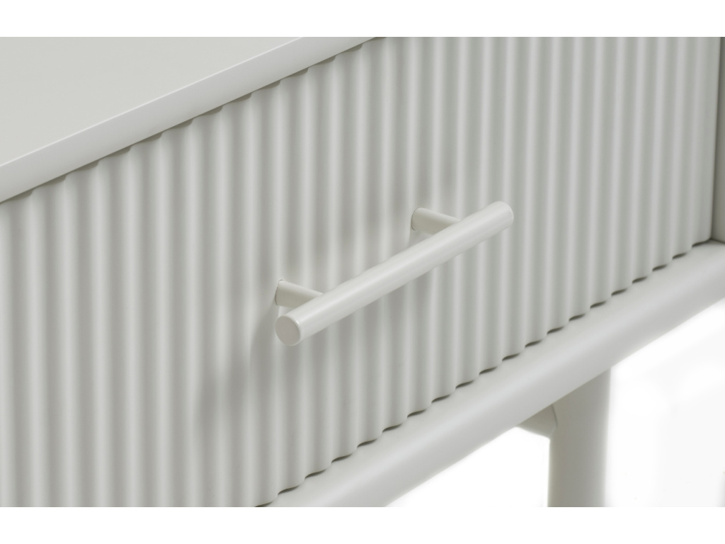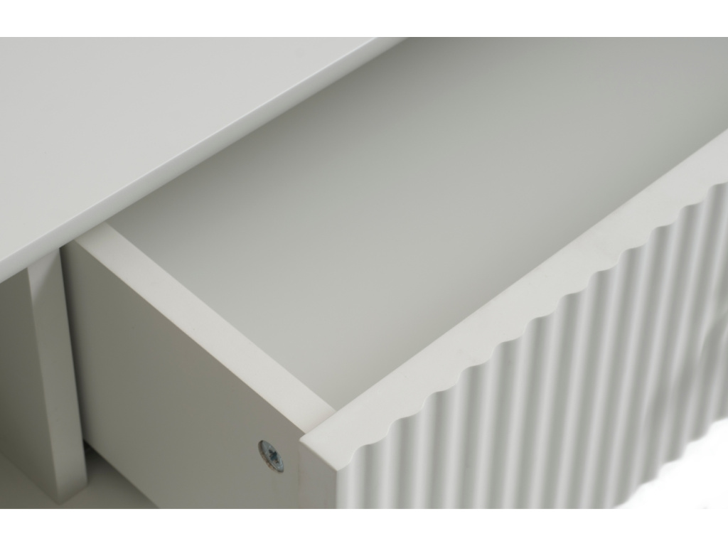 Konferenční stolek Palma značky Unique Furniture se vyznačuje jednoduchými liniemi a nápaditým designem, který okamžitě upoutá pozornost. Jemné drážkování dodává stolku lehkost a vytváří originální prvek ve vašem interiéru. Stolek je vyroben z lakovaného MDF v elegantním šedém odstínu, což mu umožňuje dokonale zapadnout do různých stylů interiéru – od minimalistického po skandinávský. Navíc je doplněn praktickou policí a zásuvkou, které poskytují šikovný úložný prostor. Perfektně se hodí k pohovce nebo do obývacího prostoru, kde nabízí praktický prostor pro odkládání knih, dekorací či nápojů. V kolekci Palma naleznete také komody, jídelní i TV stolky, takže můžete svůj interiér sladit do jednotného stylu.