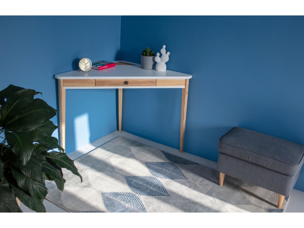 Pracovní stůl RAGABA ASHME je tady pro všechny, kteří kladou důraz na funkčnost a minimalistický design. Deska stolu je vyrobena z lakovaného MDF a doplňuje ji dřevěný organizér na vývod kabelů. Elegantní podnož tvoří tři dlouhé nohy, které jsou vyrobeny z jasanového dřeva. Na stůl se vám hravě vejde například notebook a kancelářské potřeby. Praktická zásuvka je opatřena tlumičem, který zajistí hladké otevírání a zavírání a nebude tak docházet k rychlému opotřebení. Díky svému tvaru a velikosti bude ASHME ideálním kouskem do menších interiérů či garsonky. Zároveň se stane perfektním designovým kouskem do vaší pracovny. Využití najde také v dětském nebo studentském pokoji.