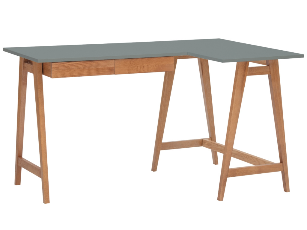 Hledáte-li do vaší pracovny rohový stůl ve skandinávském designu, je RAGABA LUKA právě pro vás. Stůl disponuje dvěma zásuvkami z jasanového masivu, které vám poskytnou praktické úložiště na potřebné věci. Díky rohové desce z MDF vám stůl nabídne pohodlí a dostatečný prostor při práci. Uspořádání věcí a kancelářských potřeb tak bude o mnoho snazší. Elegantní minimalistická podnož je vyrobena z jasanového dřeva, namořena mořidlem v odstínech dubu. LUKA bude perfektním designovým kouskem do vaší pracovny, využití najde také v dětském nebo studentském pokoji.