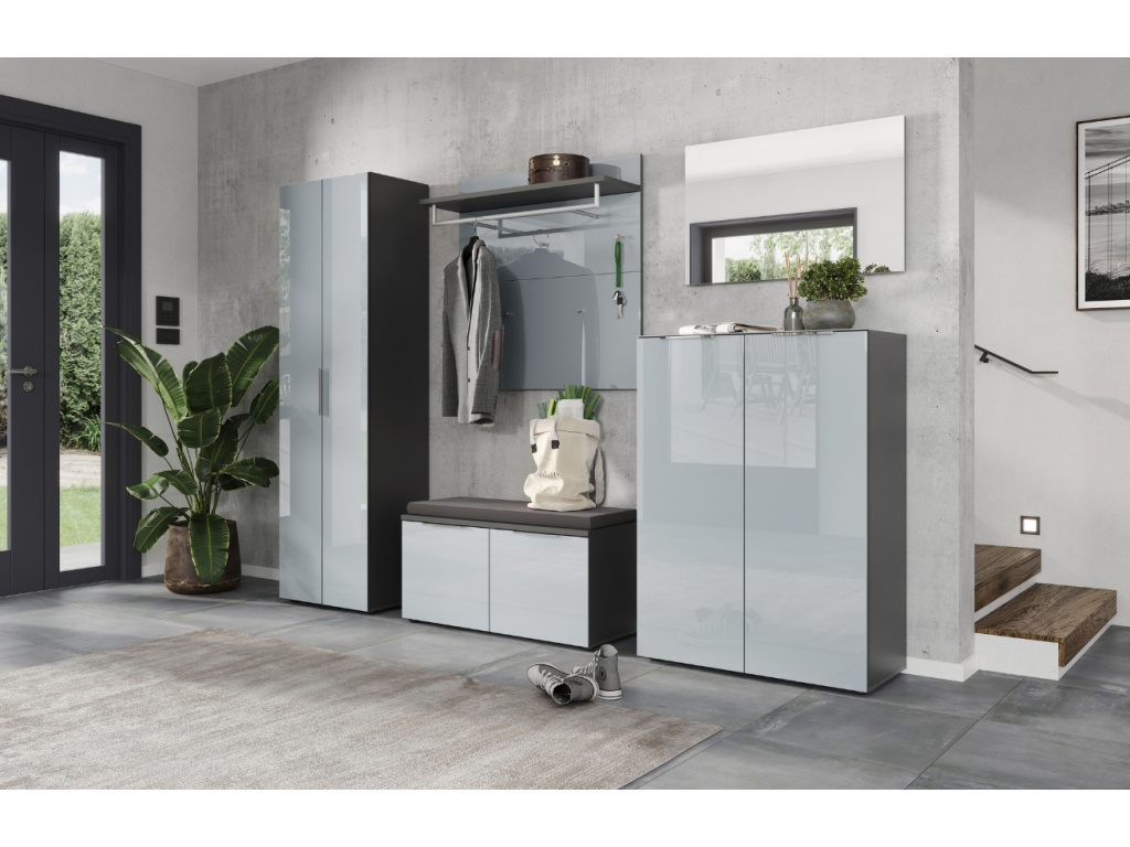 Nástěnný věšák Genova zaujme svým moderním a minimalistickým vzhledem. Vyrobený je z lamina v kombinaci s MDF a díky lesklé šedé barvě zpestří každý interiér. Věšák je díky svému designu prostorově velmi úsporný a nabízí 5 háčků a 1 polici. Věšák se skvěle hodí do moderně zařízených interiérů.