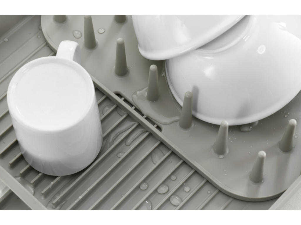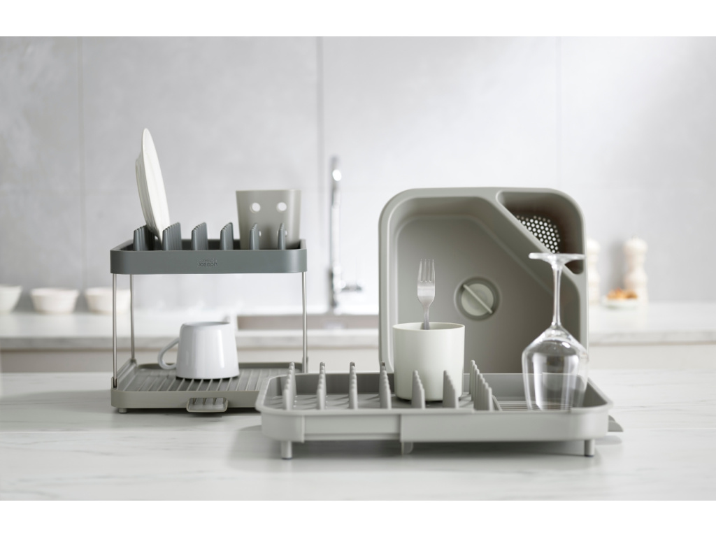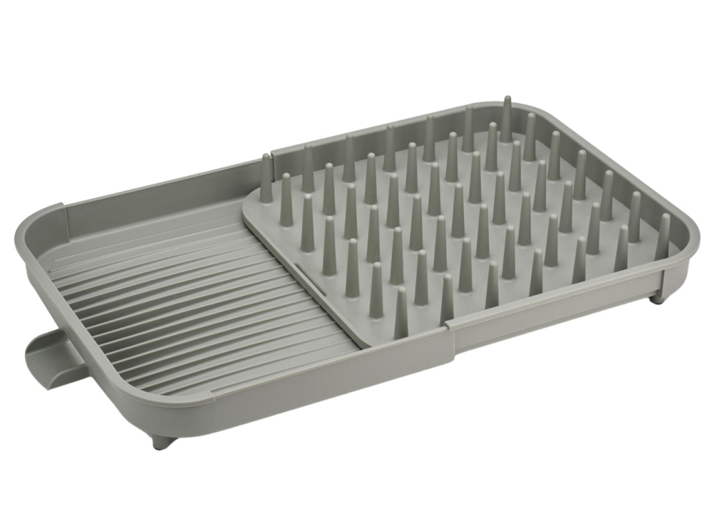 Potřebujete víc místa pro sušení nádobí, ale nechcete zabírat celou linku? Rozšiřovatelný odkapávač Joseph Joseph Duo je chytré řešení, které se přizpůsobí přesně vašim potřebám. Díky posuvné konstrukci snadno zvětšíte jeho plochu, kdykoli potřebujete – a po použití ho jednoduše zasunete zpět, aby nezabíral zbytečný prostor. Odkapávač nabízí integrovaný držák na příbory, samostatný prostor pro talíře i sklenice a odtokový otvor s hubičkou, který efektivně odvádí vodu přímo do dřezu. Protiskluzové nožičky zajišťují stabilitu na pracovní ploše a snadno čistitelný povrch usnadňuje údržbu.