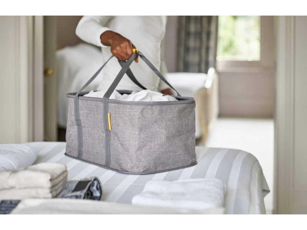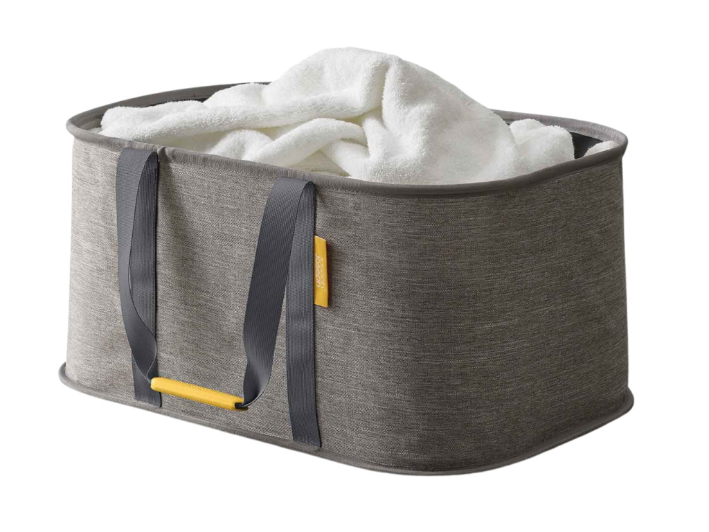 Více prádla? Žádný problém. Hold-All Max je chytrý, skládací koš, který nabízí extra prostor, aniž by zabíral místo navíc. S objemem 35 litrů pohodlně pojme i větší kusy jako ložní prádlo nebo osušky – a přitom se dá po použití snadno složit naplocho a schovat do skříně nebo nad pračku. Díky pevným madlům ho snadno přenesete jednou rukou. Koš je vyrobený z odolné tkaniny, která drží tvar i prázdná a vnitřní strana je vlhkosti odolná a snadno omyvatelná – takže si poradí i s vlhkým prádlem. Hold-All Max přináší praktický úklid s promyšleným designem, protože i prádlo si zaslouží stylové místo.