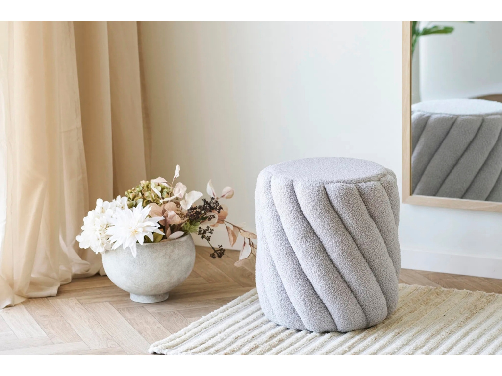 Taburet Sansa zaujme na první pohled originálním designem, který okamžitě oživí každý interiér. Jeho jemně spirálovitá struktura vytváří zajímavý vizuální efekt a dodá prostoru sofistikovaný nádech. Měkké čalounění v příjemném neutrálním odstínu skvěle zapadne do interiérů laděných ve stylu scandi, elegantně doplní boho prostředí a v moderním prostoru vytvoří vyvážený kontrast k minimalistickým liniím. Díky kompaktním rozměrům působí lehce a flexibilně, takže se snadno přizpůsobí různým způsobům využití. Poslouží jako pohodlné místo k sezení, stylová podnožka nebo elegantní doplněk k pohovce. Jeho nadčasový vzhled podtrhne charakter místnosti a dodá jí útulnou atmosféru.