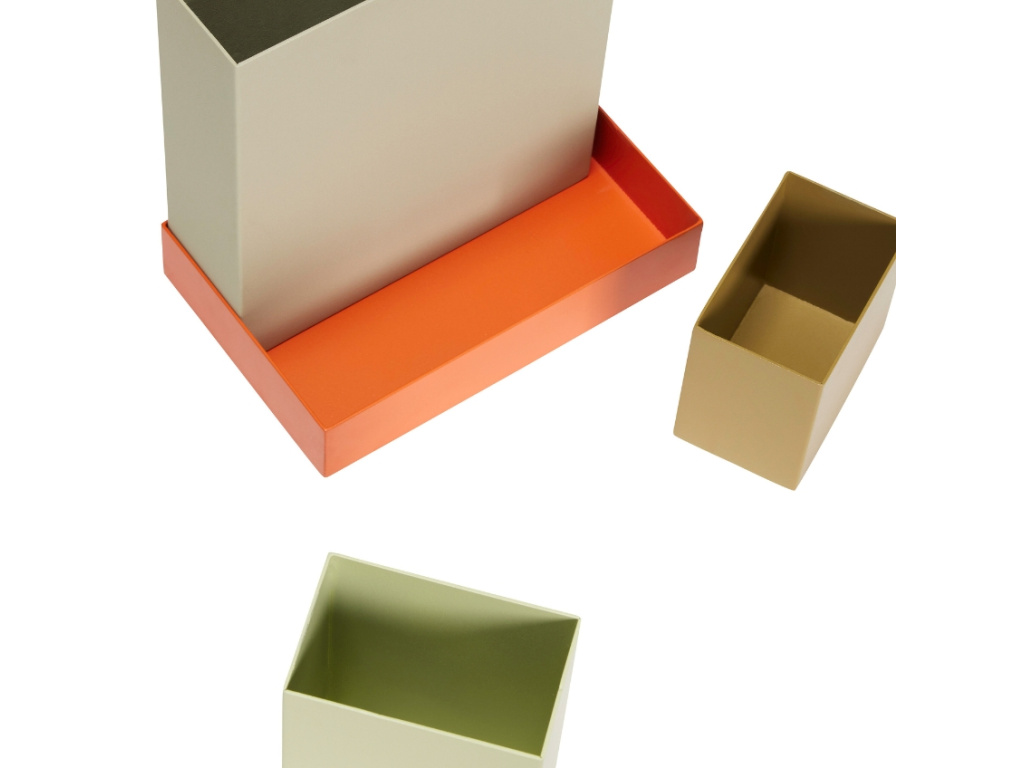 Mějte své drobnosti úhledně uspořádané a stále na dosah se setem organizérů Sortit od značky Hübsch. Jsou vyrobeny z lakované oceli a mohou se pochlubit nadčasovým designem, který je zároveň funkční i stylový. Díky čtyřem různě velkým úložným prostorům do nich pohodlně uložíte všechny nezbytnosti, které potřebujete mít zorganizované a stále při ruce. Proměňte svoji pracovnu, koupelnu nebo ložnici v útulnější místo se setem Sortit!