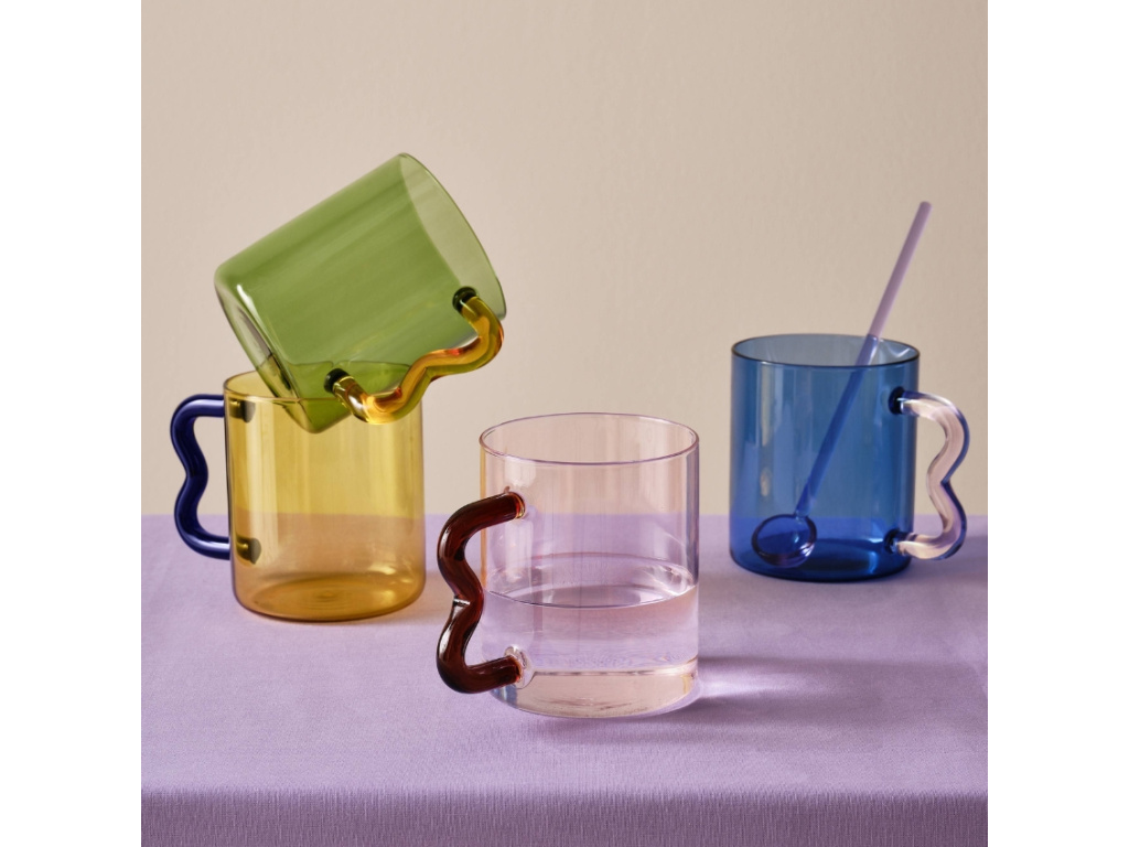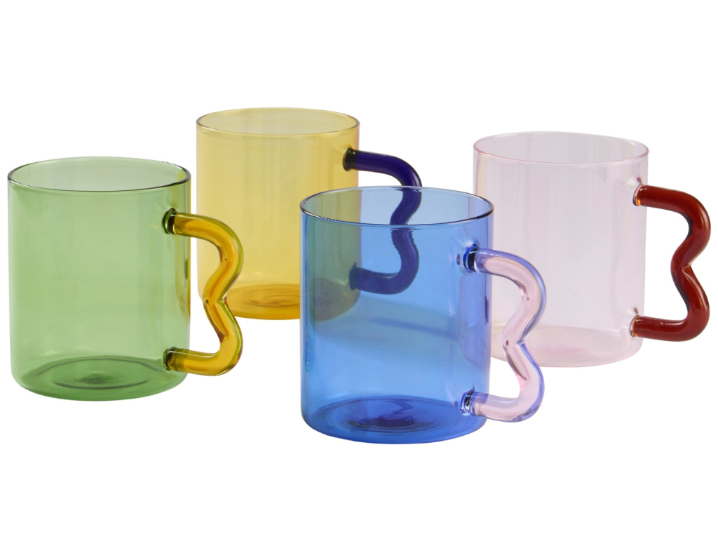Čtyřdílný set skleněných hrnků PARIS je elegantním a moderním doplňkem, který oživí každou kuchyni. Každý hrnek je ručně vyrobený s důrazem na detail a zdobený jedinečně zakřiveným uchem v odlišné barvě, což celku dodává hravý a současně sofistikovaný vzhled. Díky čistým liniím a kvalitnímu sklu je tato sada ideální pro stylové podávání kávy, čaje a jiných nápojů. PARIS spojuje estetiku a funkčnost v jednom, a stane se oblíbenou součástí každodenního servírování. Představuje také skvělý tip na dárek pro vaše blízké.