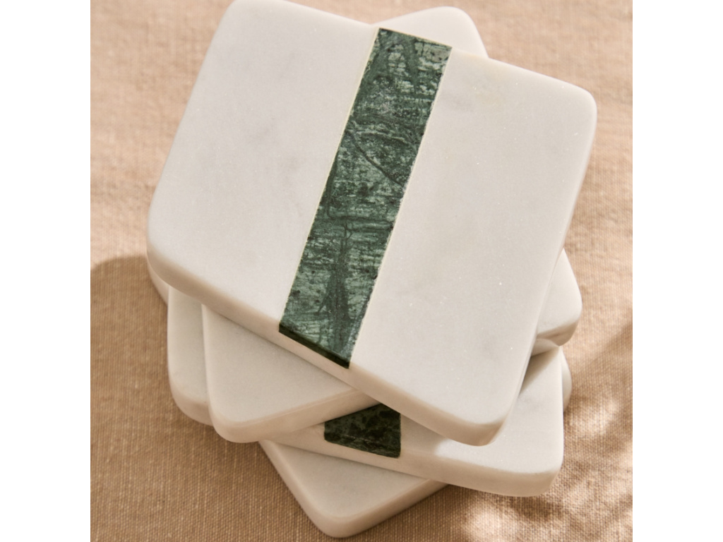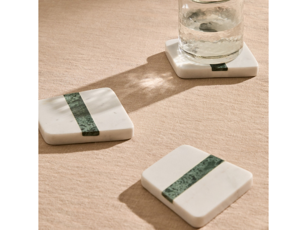 Set čtyř bílo-zelených mramorových podtácků Kave Home Nira