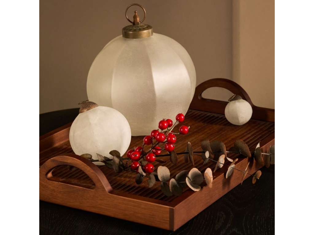 Série ozdob Kave Home Talve z bílého recyklovaného skla vnese do interiéru hřejivou vánoční atmosféru. Vybírat můžete ze tří dostupných velikostí, které můžete stylově nakombinovat. Vyjímat se budou nejen na vánočním stromečku – můžou ozdobit třeba i prostřený stůl nebo sezónně ozdobený toaletní stolek.