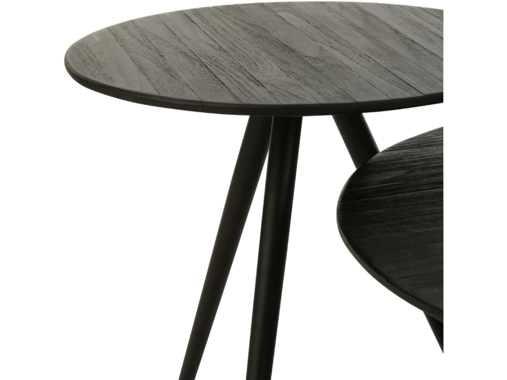 Set čtyř odkládacích stolků Takke od značky J-line vás ohromí svým jednoduchým, přesto nadčasovým designem. Stolky v sobě snoubí dva styly - industriální a minimalistický, díky čemuž budou stále aktuální a udržitelné. Černou desku z teakového dřeva doplňuje kovová podnož v černé barvě. Můžete je umístit všechny k sobě a vytvořit díky jejich rozdílné výšce kaskádový efekt, nebo každý z nich umístit jinam. Stolky Takke jsou součástí produktové série nesoucí stejnojmenný název – zkompletujte celou kolekci!