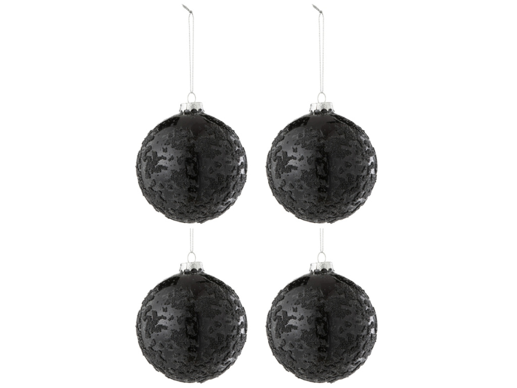 Podívám seSet čtyř černých skleněných vánočních ozdob J-line Velvet 10 cm